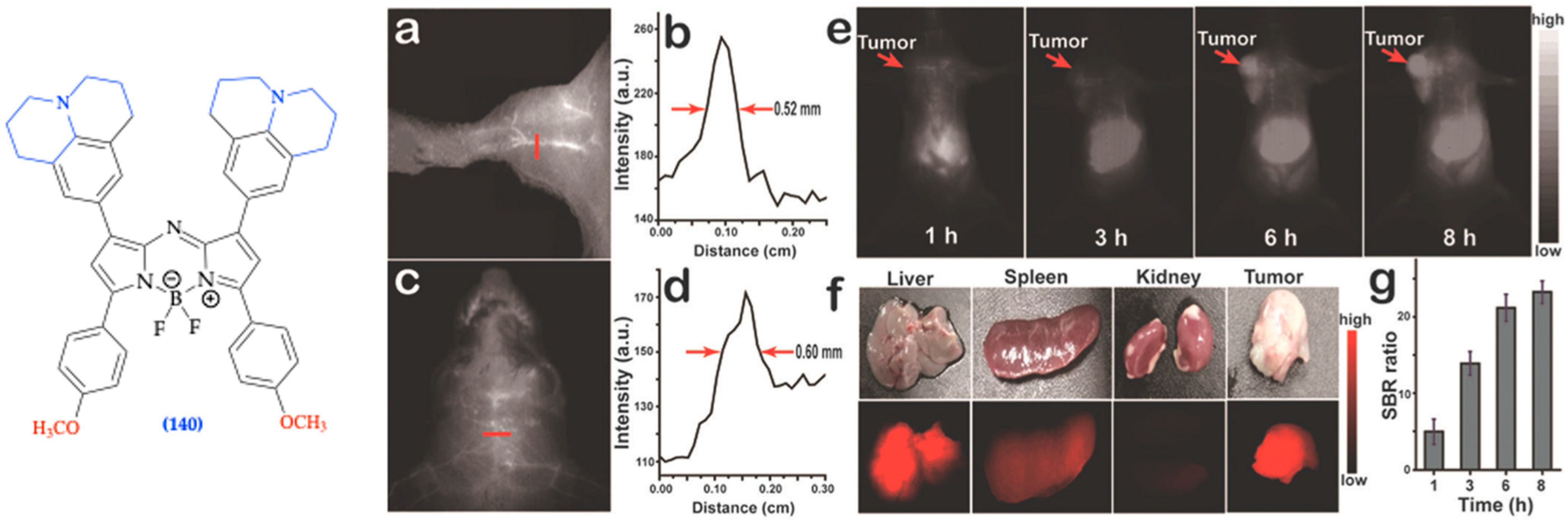- Wu, P.; Zhu, Y.; Liu, S.; Xiong, H. Modular Design of High-Brightness pH-Activatable Near-Infrared BODIPY Probes for Noninvasive Fluorescence Detection of Deep-Seated Early Breast Cancer Bone Metastasis: Remarkable Axial Substituent Effect on Performance. ACS Cent. Sci. 2021, 7, 2039–2048. [Google Scholar] [CrossRef]