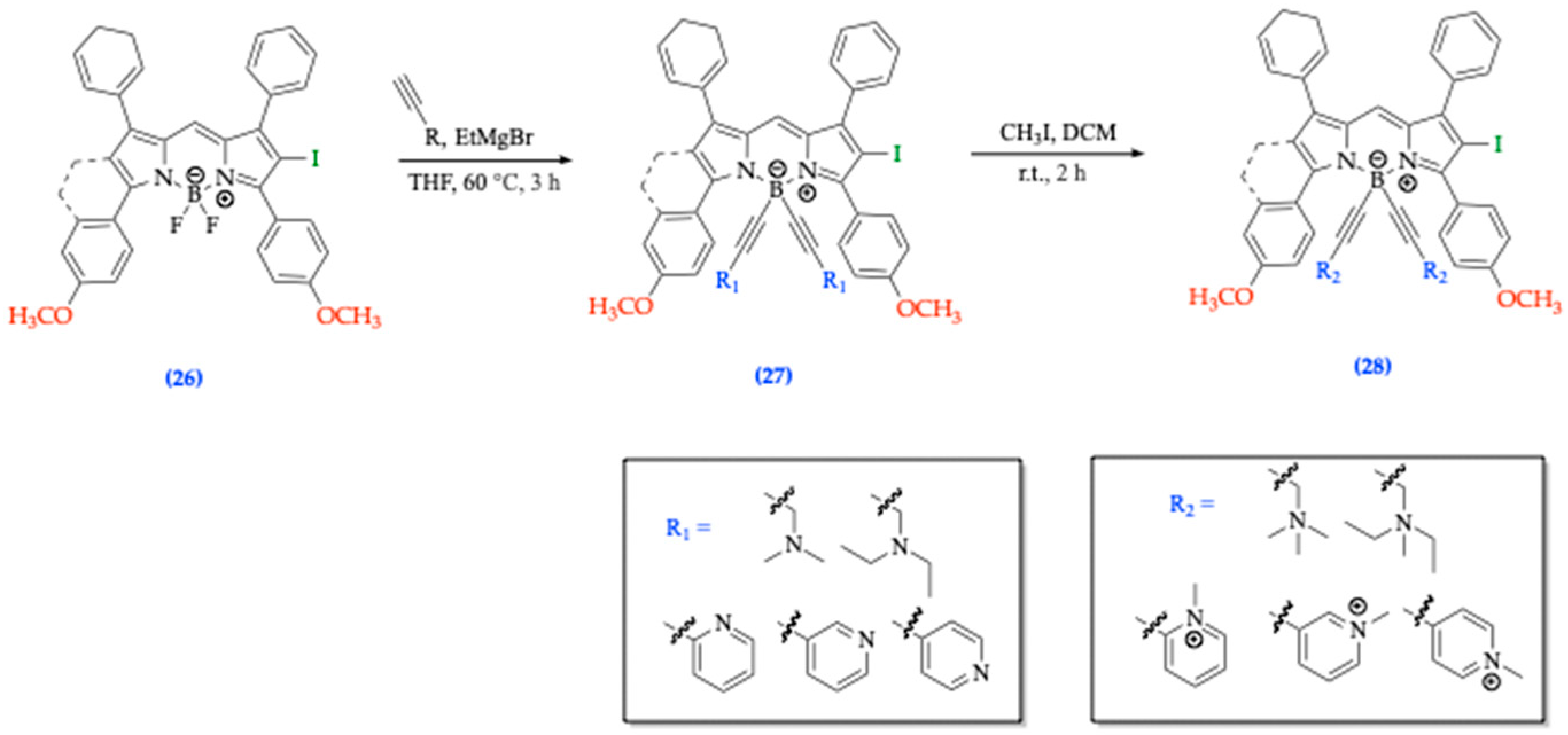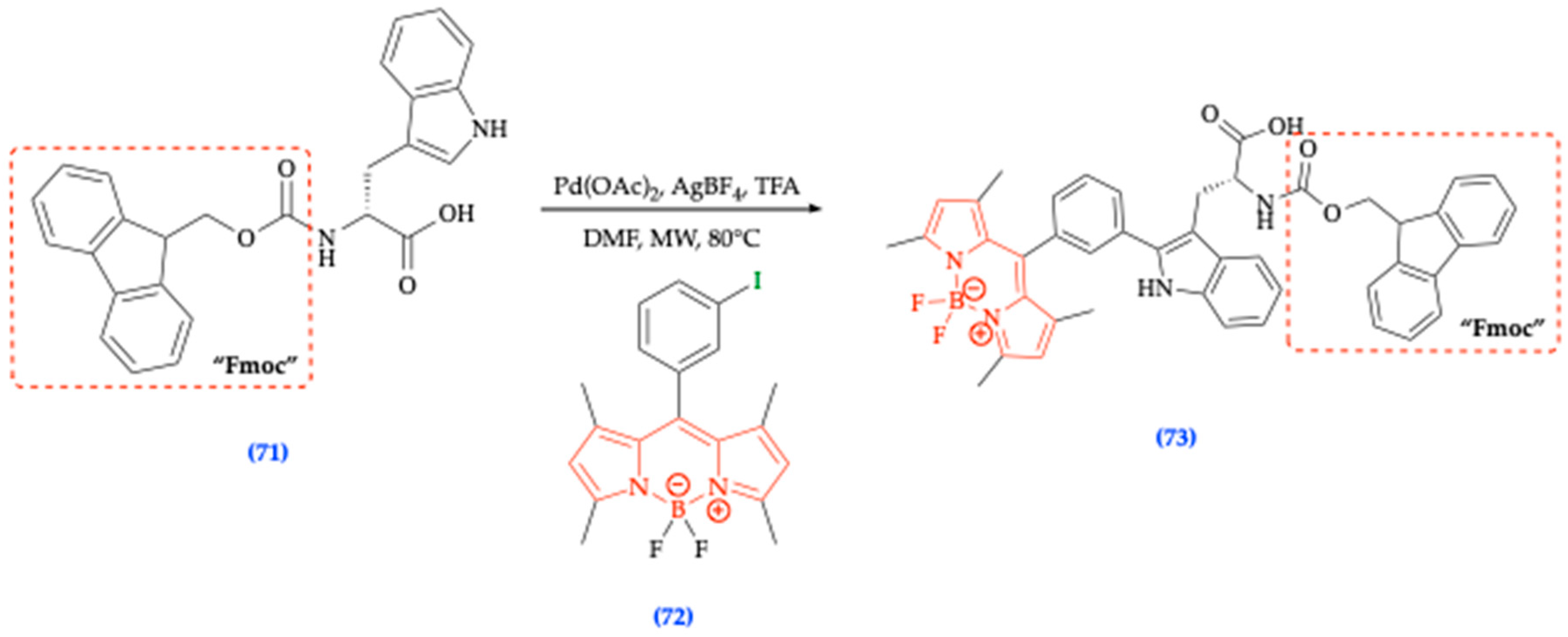 6.2. Functionalized BODIPY Fluorophores for Multicomponent Reactions (MCRs)