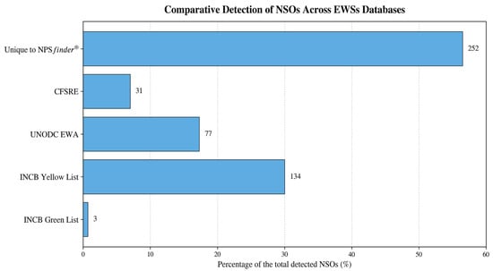 Performance of the NPSfinder® tool in detection of NSOs compared to other EWS databases with NSOs uniquely identified for each list.