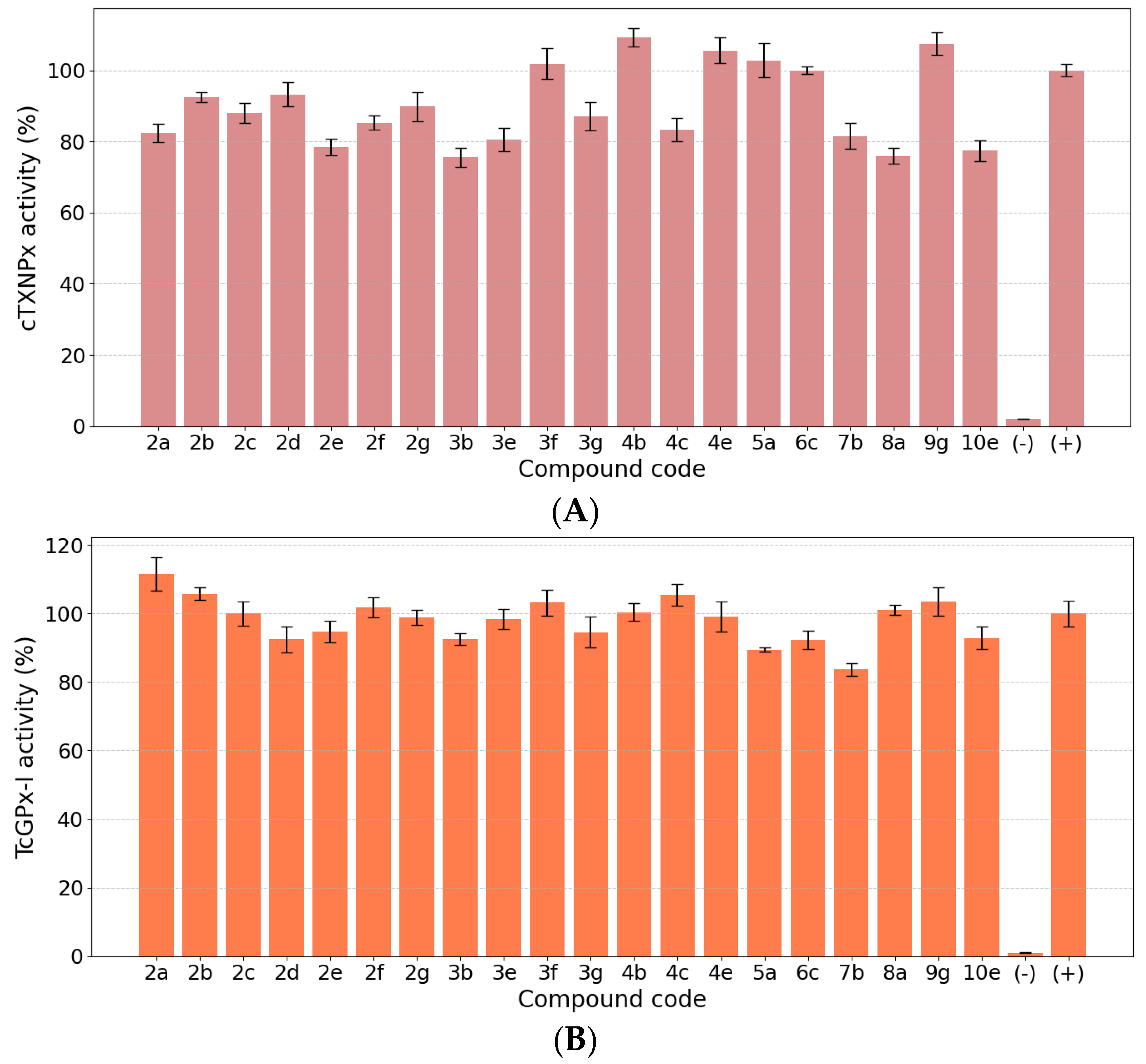3.5. Tryparedoxin Peroxidase (cTXNPx) and Glutathione Peroxidase I (TcGPx-I) Activity Assays
