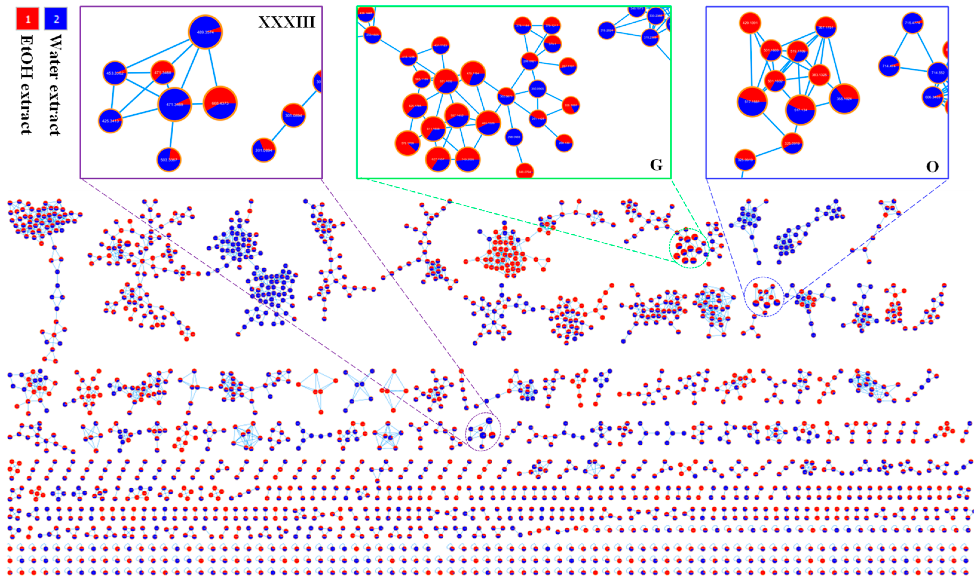2.5. Analysis of Metabolites from Both Water and EtOH Extracts
