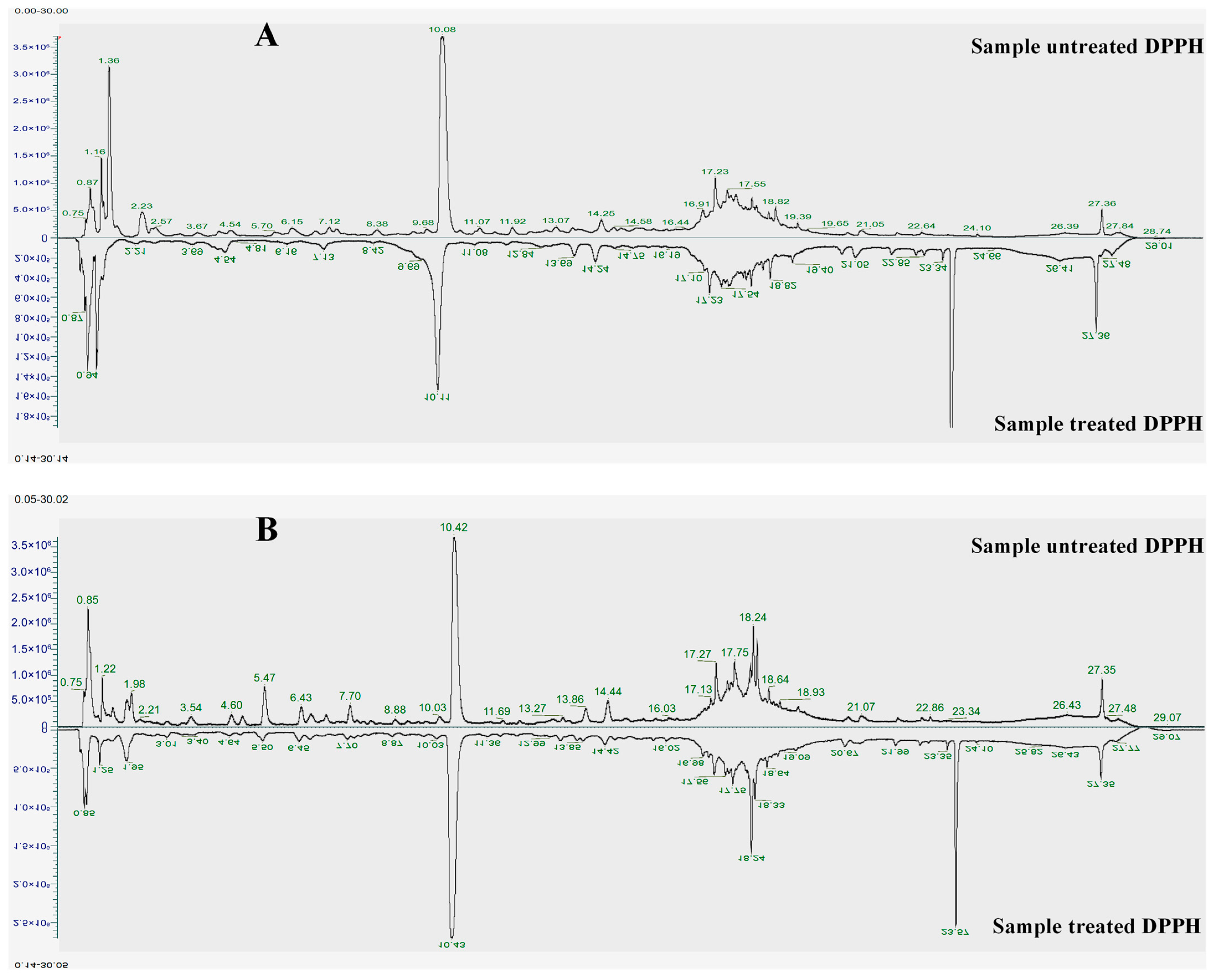 2.2. Identification of Antioxidants Using the LC-DPPH Method