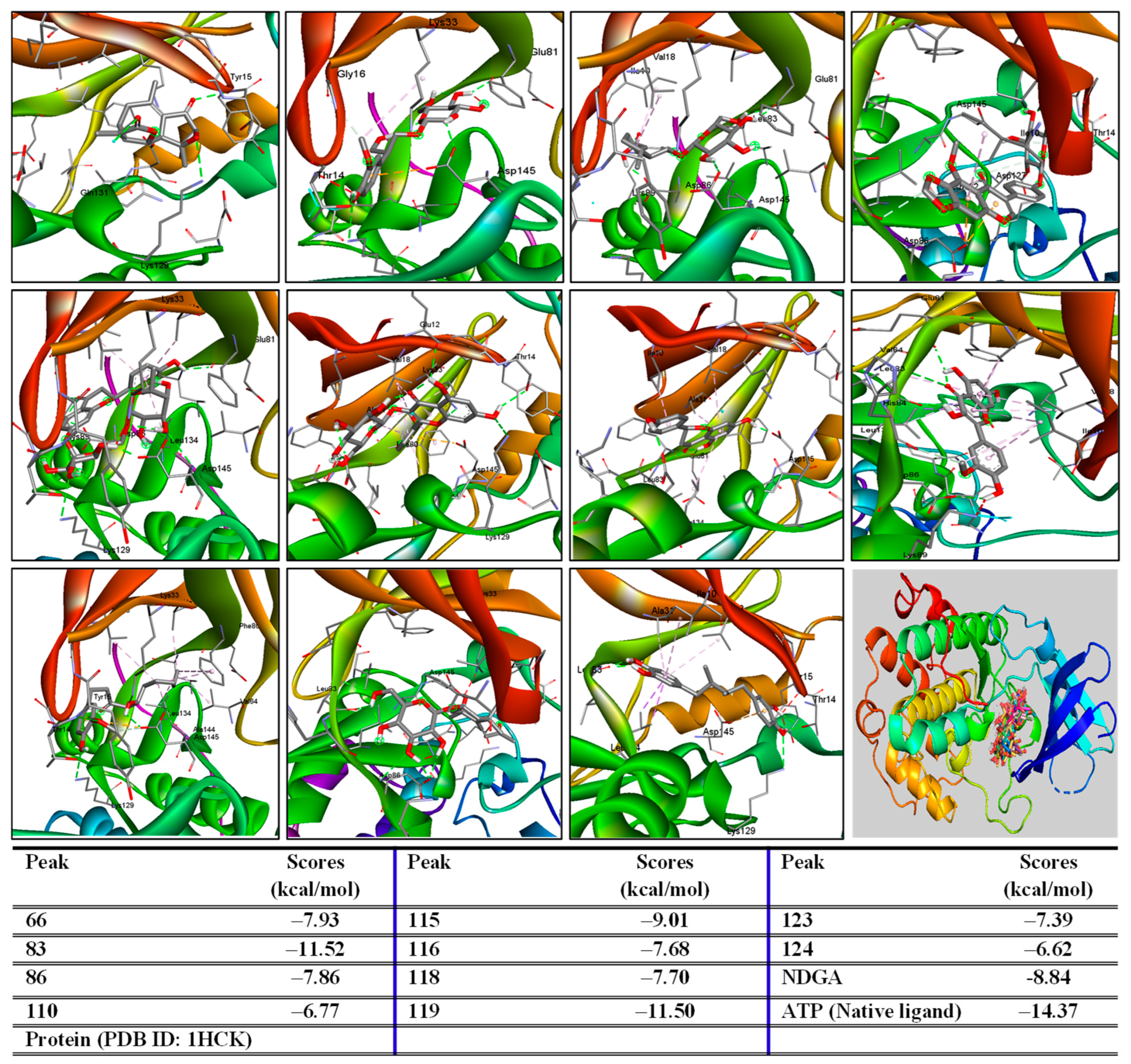 | 20 | 292.1158 | −1.02 | 125.68 | 4 | 8 | Soluble | - | - | 0.55 | + | - |