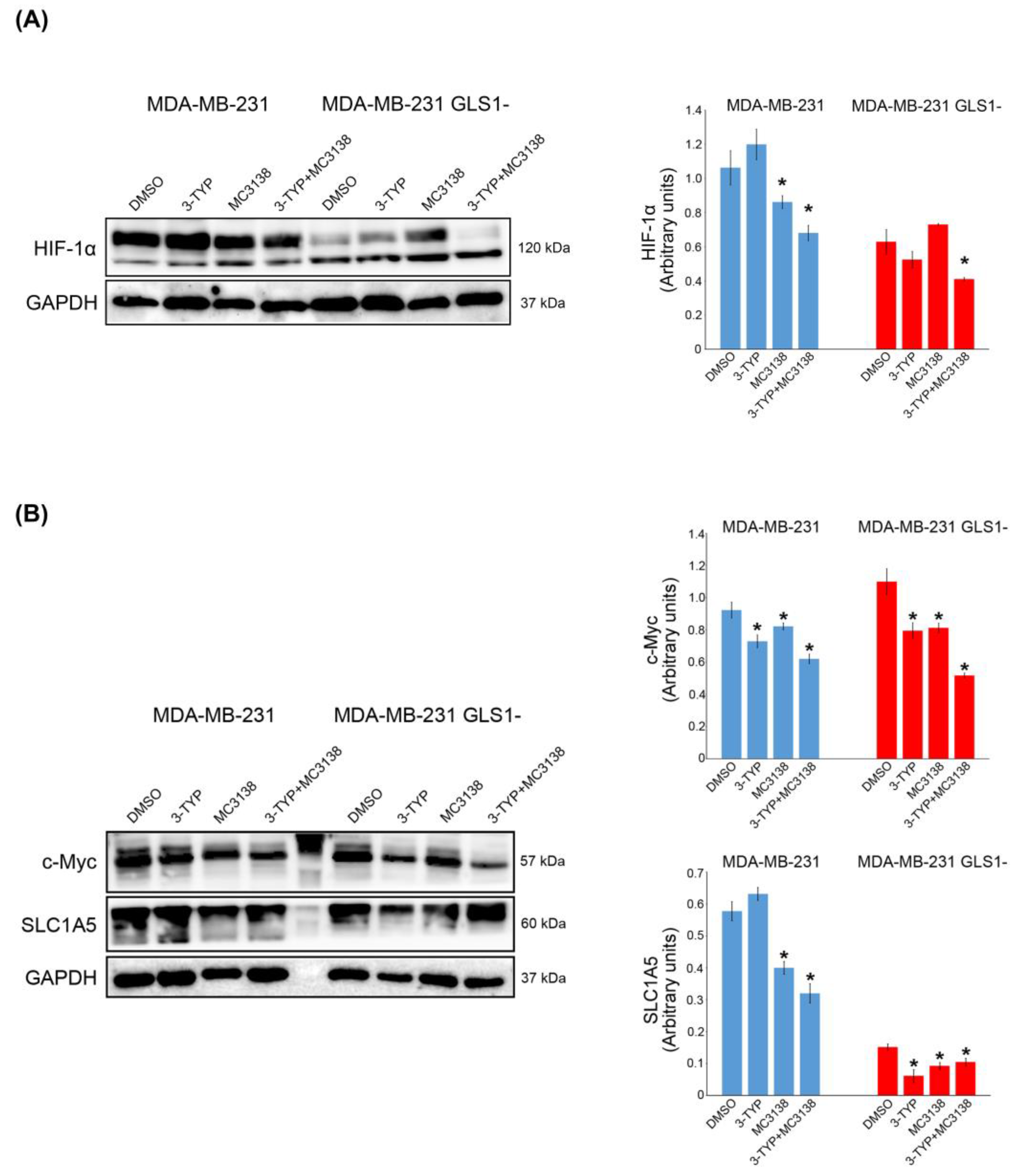 2.4. SIRT3 Inhibition and SIRT5 Activation Influence HIF-1α, c-Myc and SLC1A5 Expression