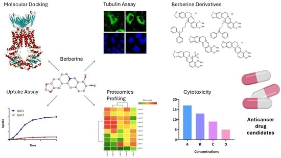 - Qian, K.; Tang, C.Y.; Chen, L.Y.; Zheng, S.; Zhao, Y.; Ma, L.S.; Xu, L.; Fan, L.H.; Yu, J.D.; Tan, H.S.; et al. Berberine reverses breast cancer multidrug resistance based on fluorescence pharmacokinetics in vitro and in vivo. ACS Omega 2021, 6, 10645–10654. [Google Scholar] [CrossRef] [PubMed]