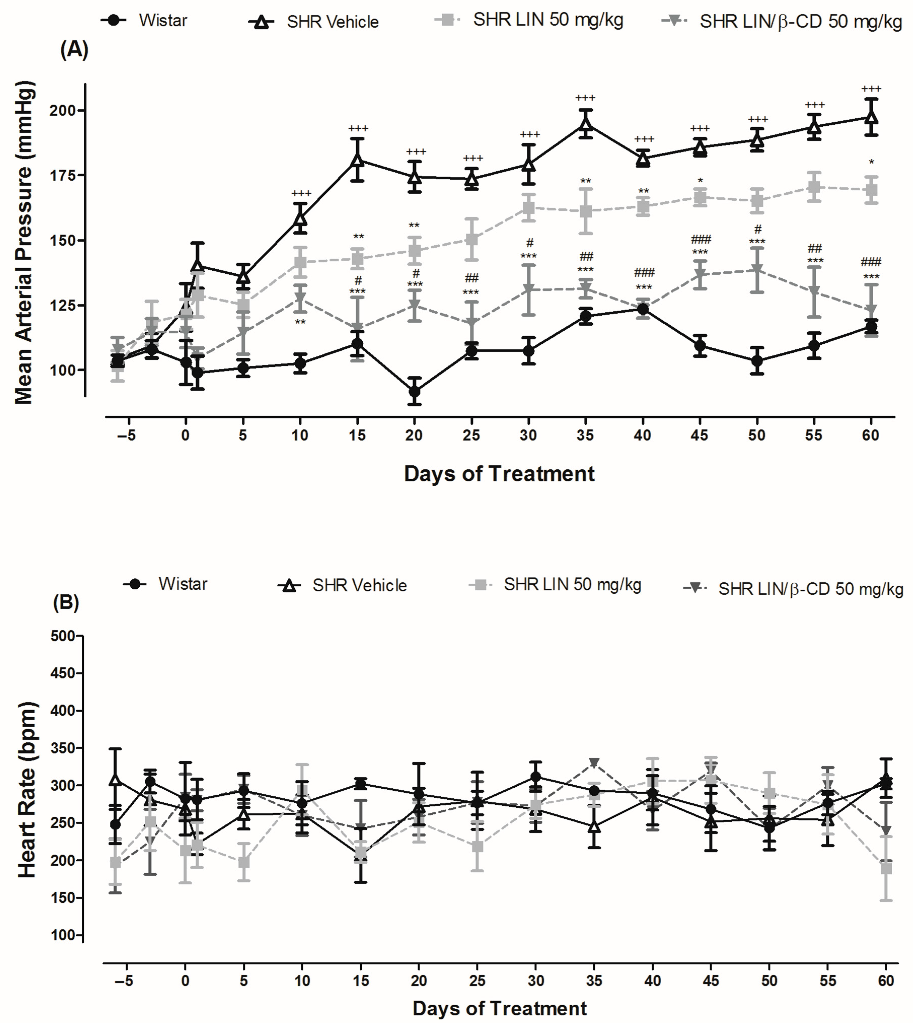 2.3. Antihypertensive Effects of Chronic LIN and LIN/β-CD Treatment