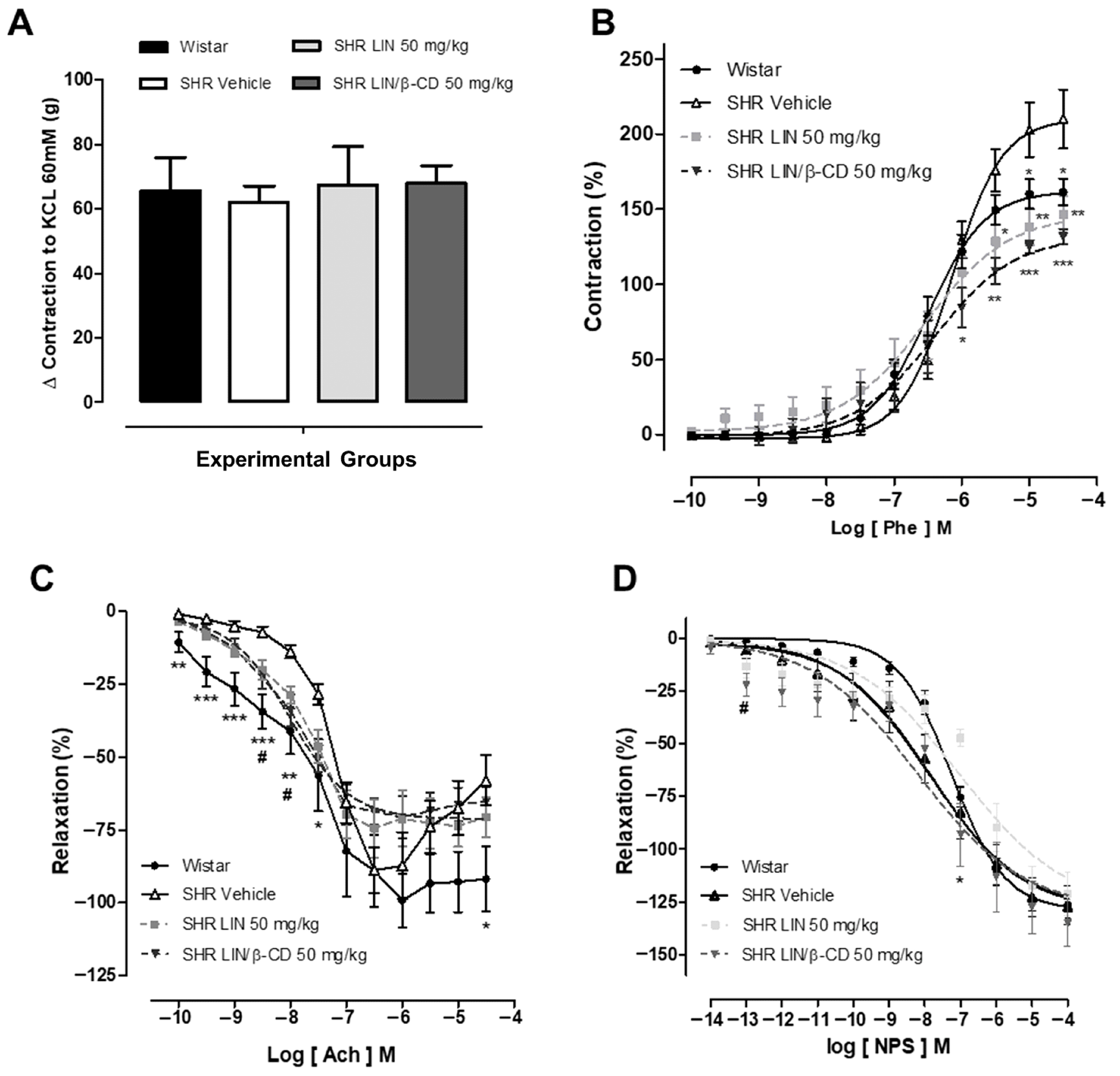 4.6. Chronic Effects of LIN and LIN/β-CD on Vascular Reactivity