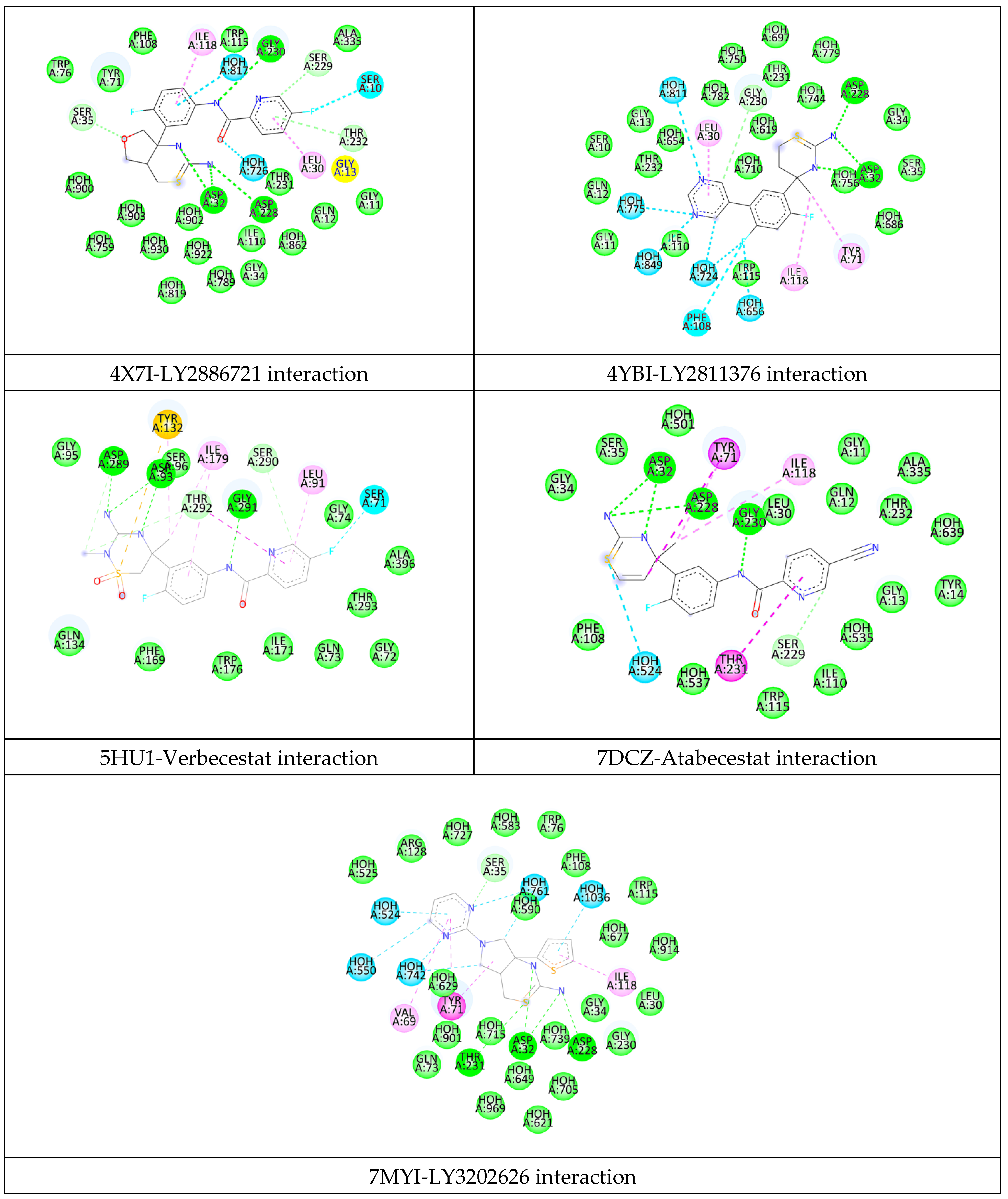 2.3. Comparison of Binding of Pocket BACE-1 and BACE-2 for Designing of Selective Inhibitors