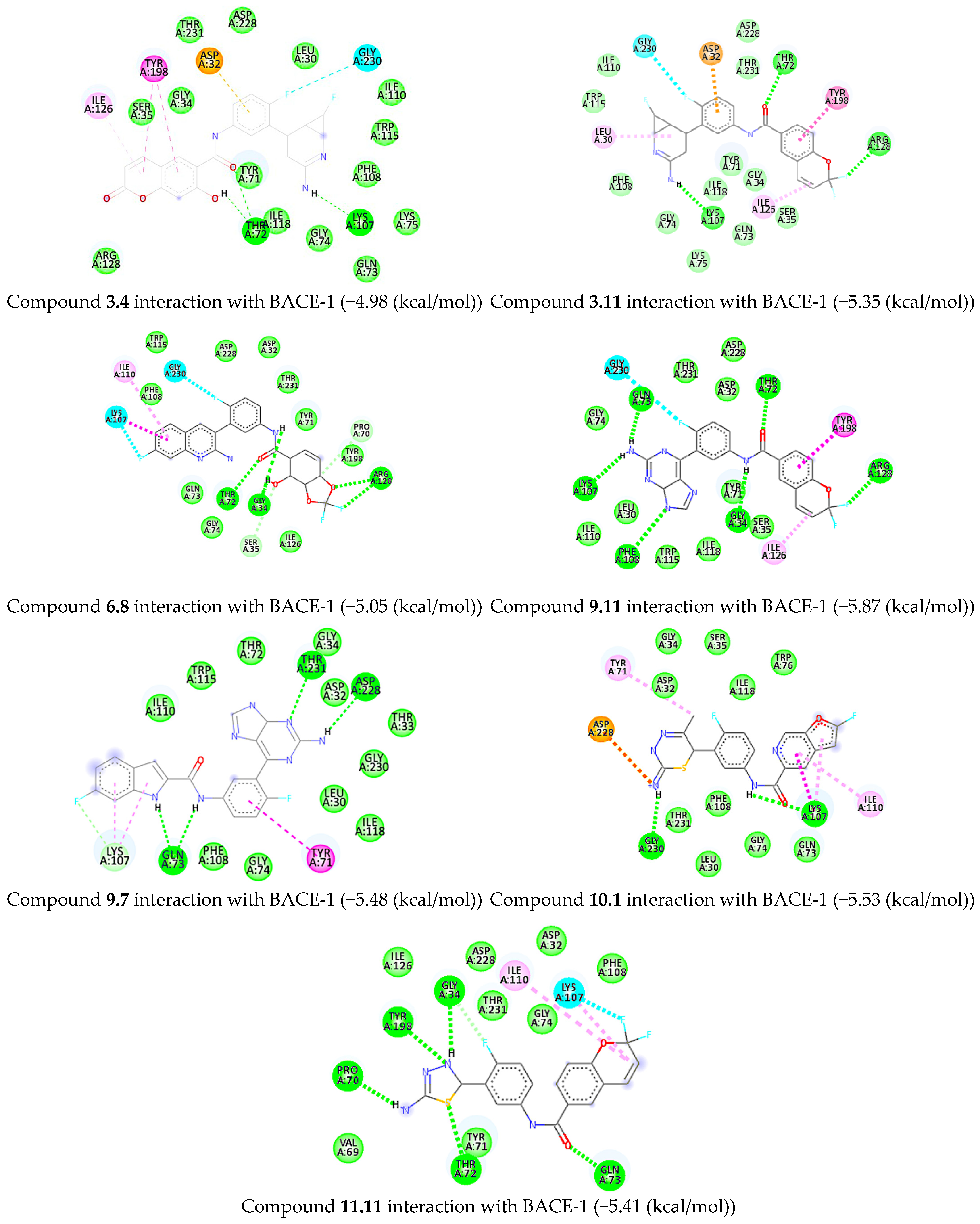 3.3. SAR Study and Design of New BACE-1 Inhibitors