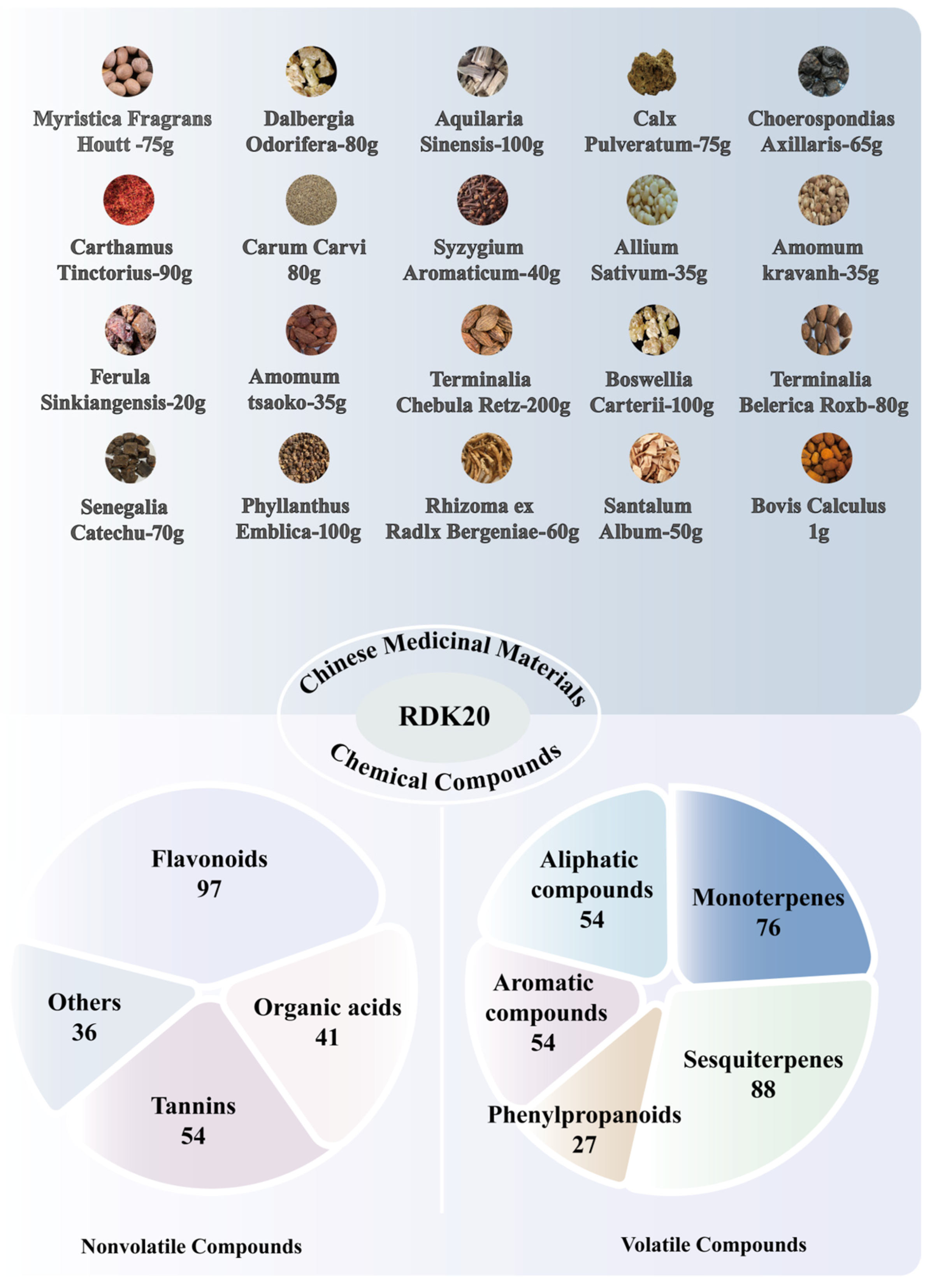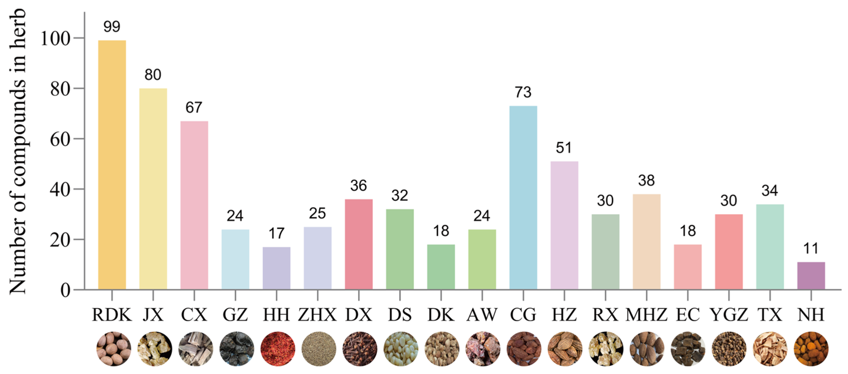 4.2. Chemical Constituents of the Single-Flavor Drugs