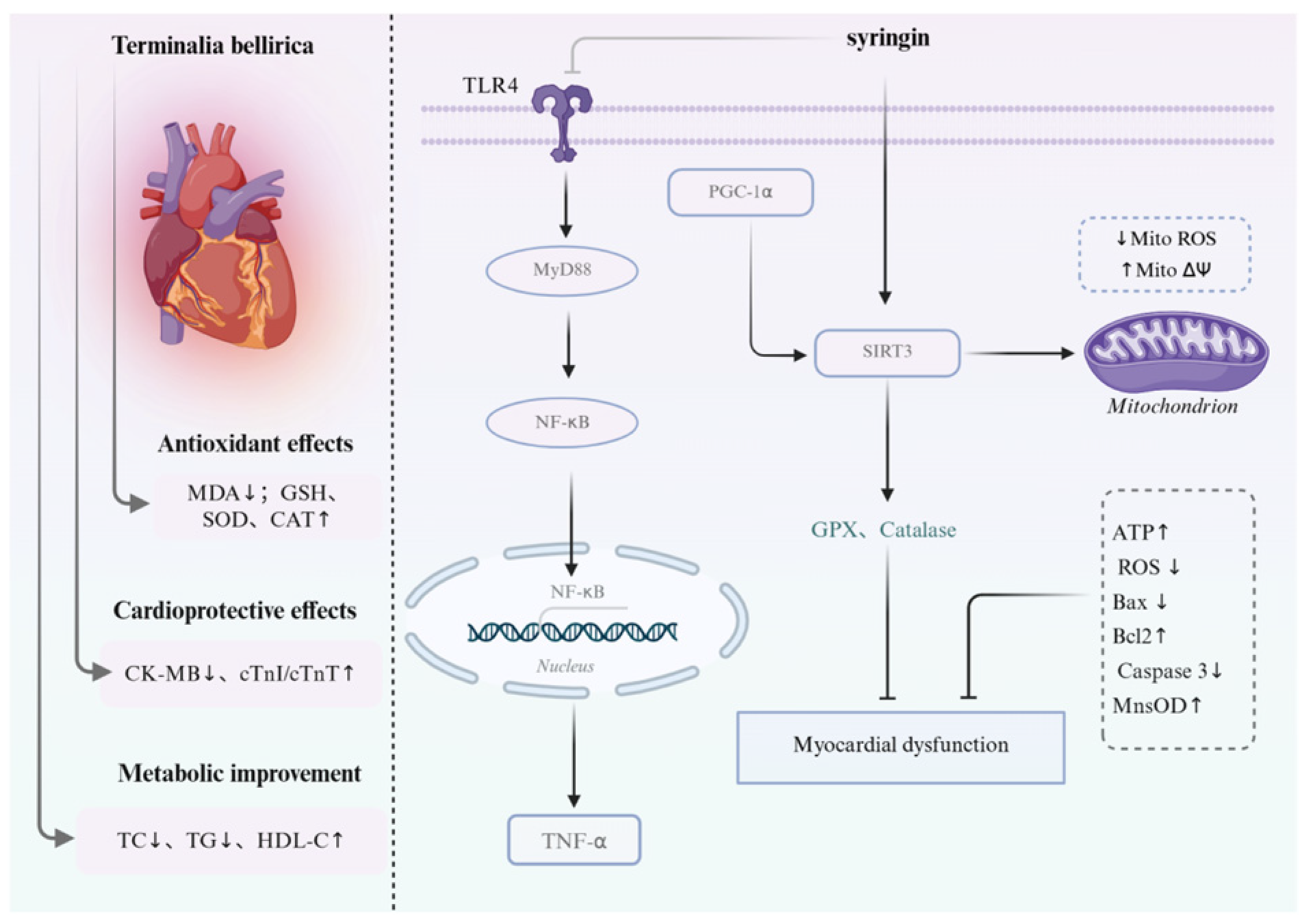 - Yao, J.P.; Li, Y.; Jin, Y.P.; Chen, Y.; Tian, L.L.; He, W.X. Synergistic cardioptotection by tilianin and syringin in diabetic cardiomyopathy involves interaction of TLR4/NF-κB/NLRP3 and PGC1a/SIRT3 pathways. Int. Immunopharmacol. 2021, 96, 107728. [Google Scholar] [CrossRef]