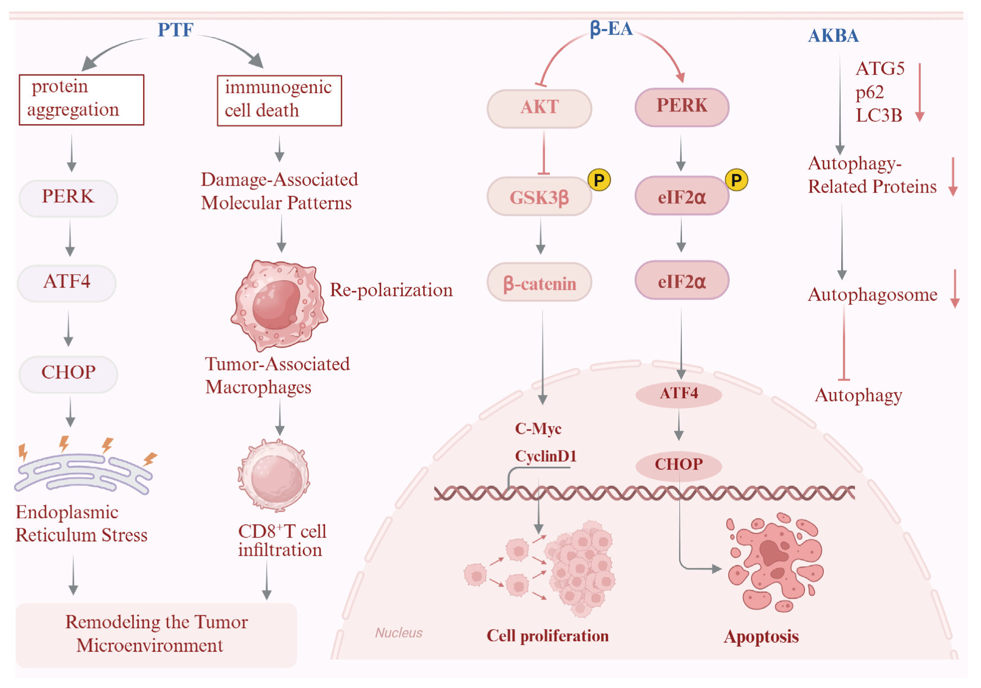 - Zhao, A.; Zhang, Z.J.; Zhou, Y.F.; Li, X.; Li, X.T.; Ma, B.; Zhang, Q. β-Elemonic acid inhibits the growth of human Osteosarcoma through endoplasmic reticulum (ER) stress-mediated PERK/eIF2α/ATF4/CHOP activation and Wnt/β-catenin signal suppression. Phytomedicine 2020, 69, 153183. [Google Scholar] [CrossRef] [PubMed]