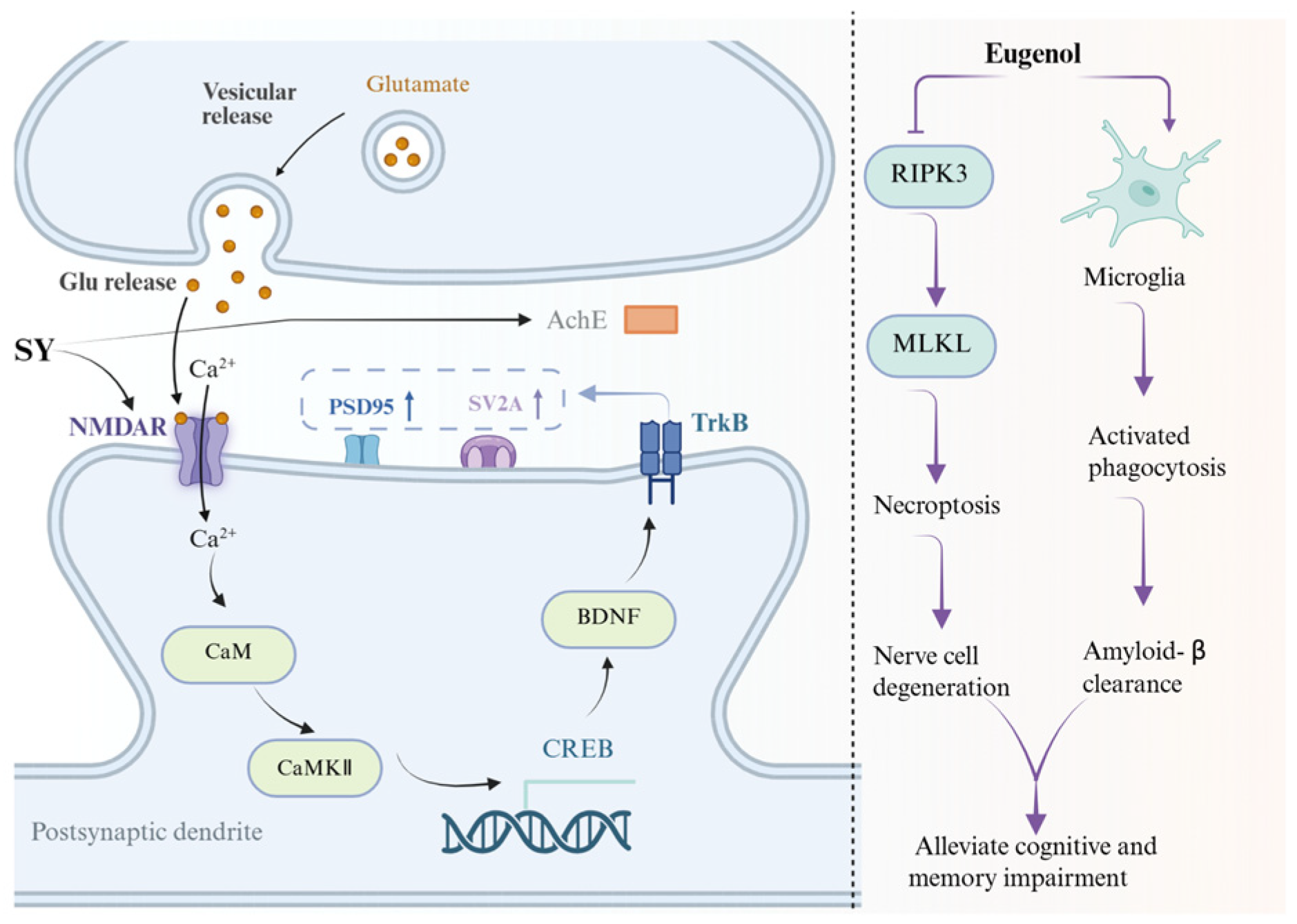 - Jung, M.J.; Kim, N.; Jeon, S.H.; Gee, M.S.; Kim, J.W.; Lee, J.K. Eugenol relieves the pathological manifestations of Alzheimer’s disease in 5×FAD mice. Phytomedicine 2023, 118, 154930. [Google Scholar] [CrossRef]