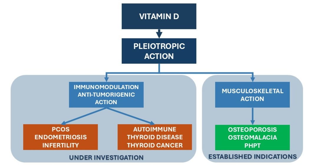 | Hypoparathyroidism | Unknown | Supported. Active vitamin D supplementation is the cornerstone of therapy, alongside calcium supplementation. | The exact benefit of non-active vitamin D supplementation is still debated | Guidelines favor active forms for precise titration. Non-active forms are used as an adjunct. A 25(OH)D3 level of 30–50 ng/mL is recommended. |