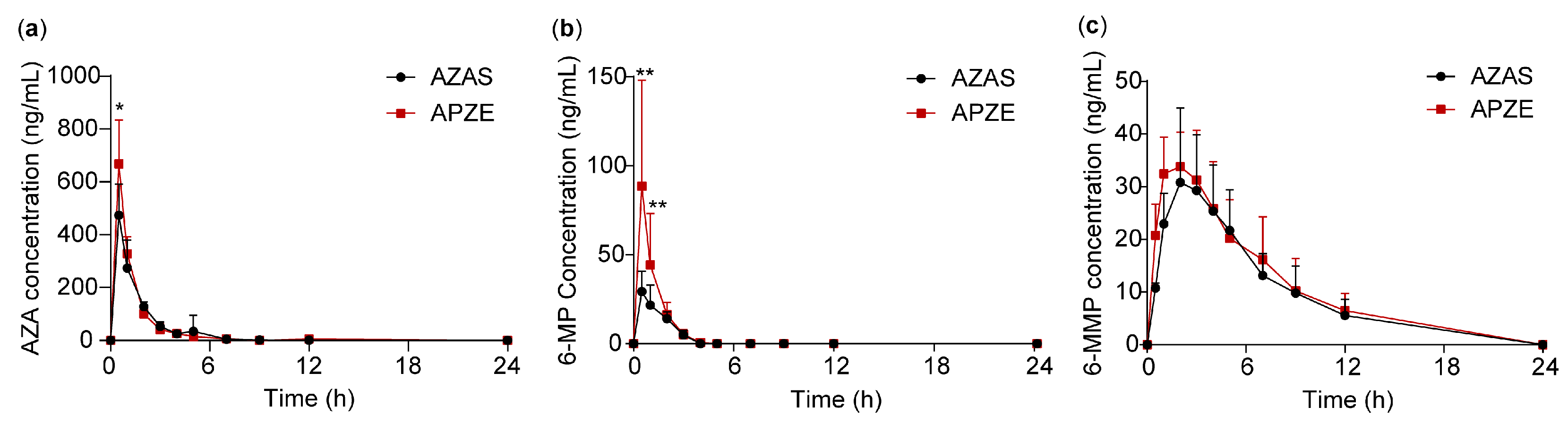 APA StyleZhang, J., Han, J., Sun, N., Zhu, Y., Mei, D., & Zhao, L. (2026). Development and Application of an LC-MS/MS Method for Simultaneous Quantification of Azathioprine and Its Metabolites: Pharmacokinetic and Microbial Metabolism Study of a Colon-Targeted Nanoparticle. Pharmaceuticals, 19(1), 58. https://doi.org/10.3390/ph19010058