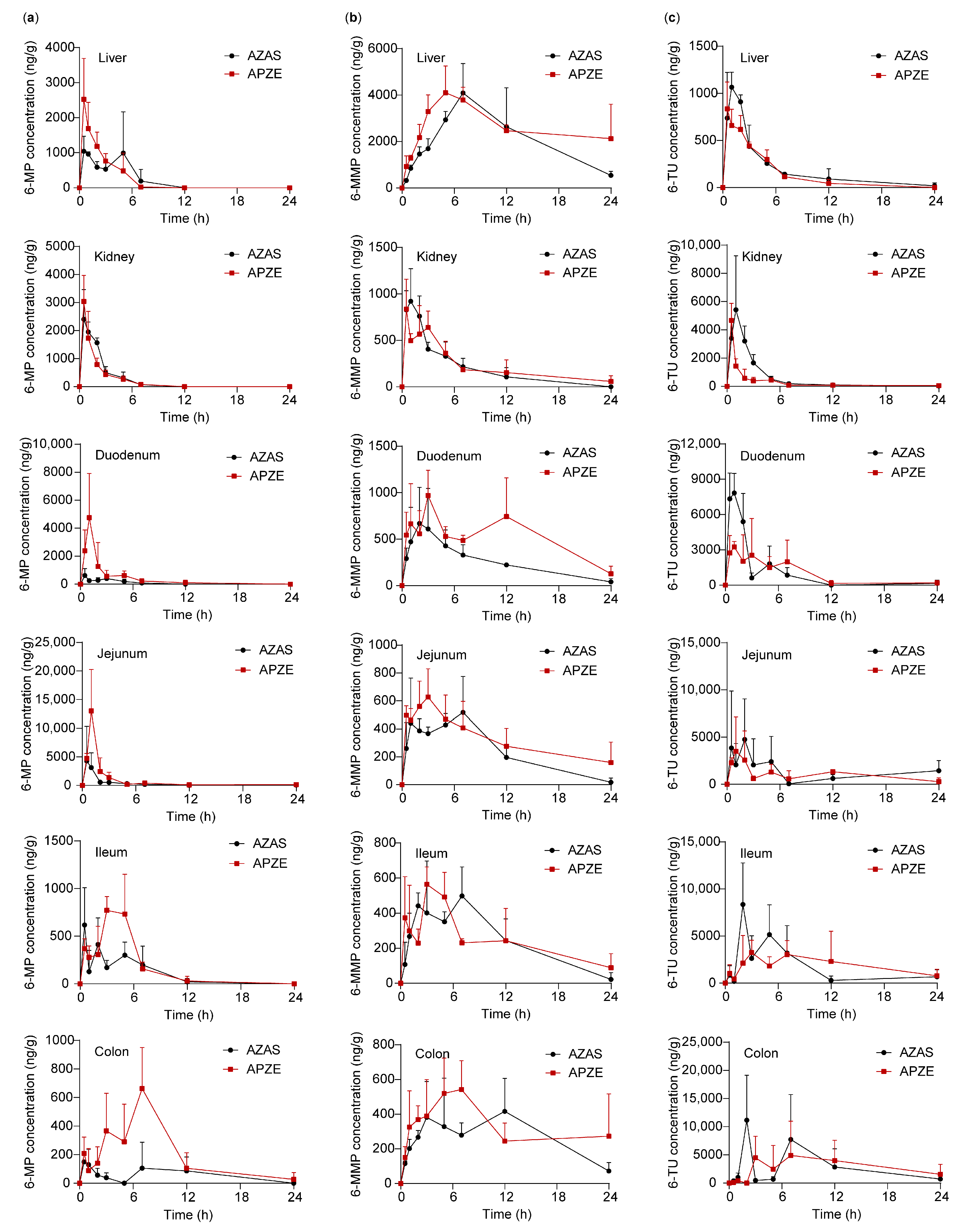 Development and Application of an LC-MS/MS Method for Simultaneous Quantification of Azathioprine and Its Metabolites: Pharmacokinetic and Microbial Metabolism Study of a Colon-Targeted Nanoparticle