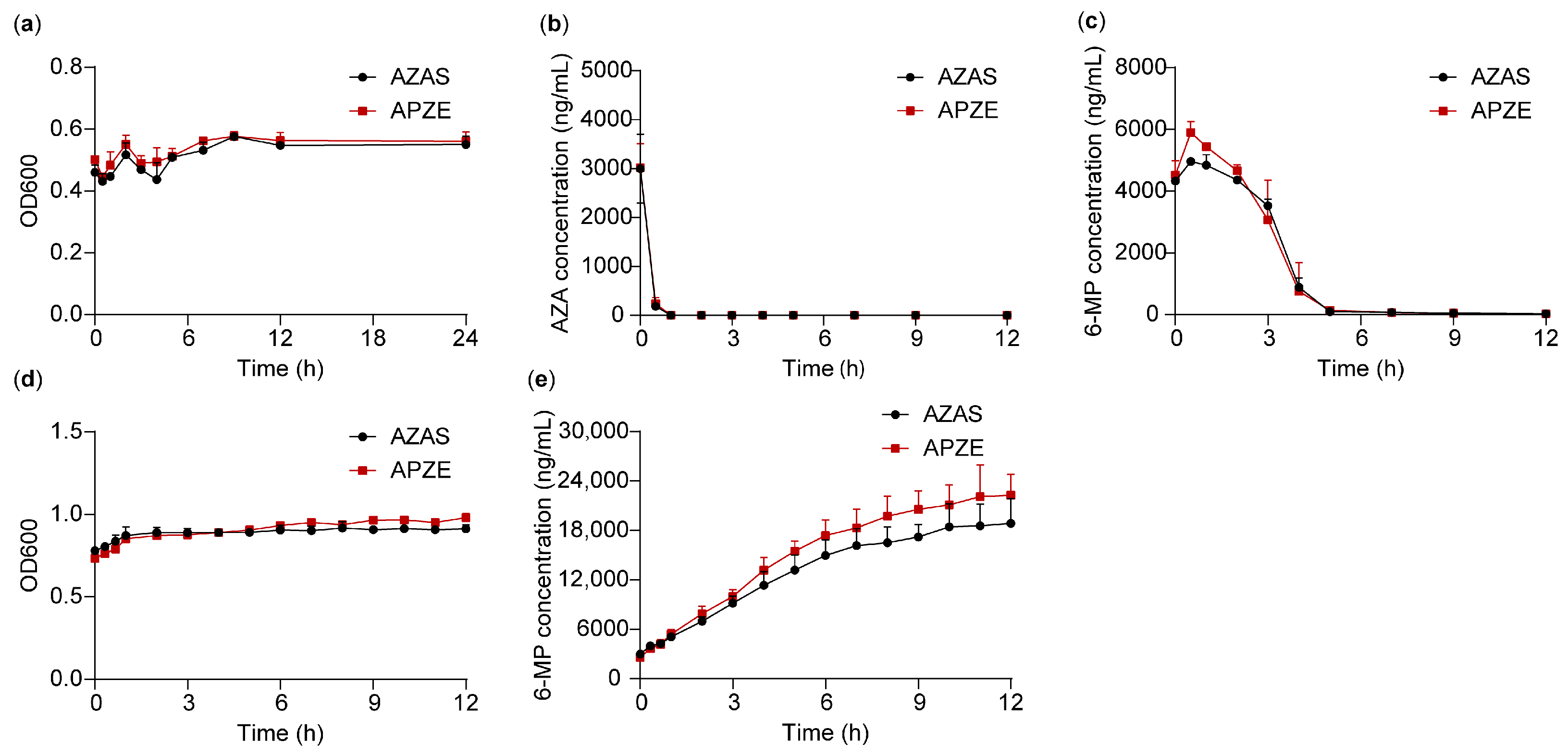Chicago/Turabian StyleZhang, Jingjing, Jiaqi Han, Ning Sun, Yuhan Zhu, Dong Mei, and Libo Zhao. 2026. "Development and Application of an LC-MS/MS Method for Simultaneous Quantification of Azathioprine and Its Metabolites: Pharmacokinetic and Microbial Metabolism Study of a Colon-Targeted Nanoparticle" Pharmaceuticals 19, no. 1: 58. https://doi.org/10.3390/ph19010058