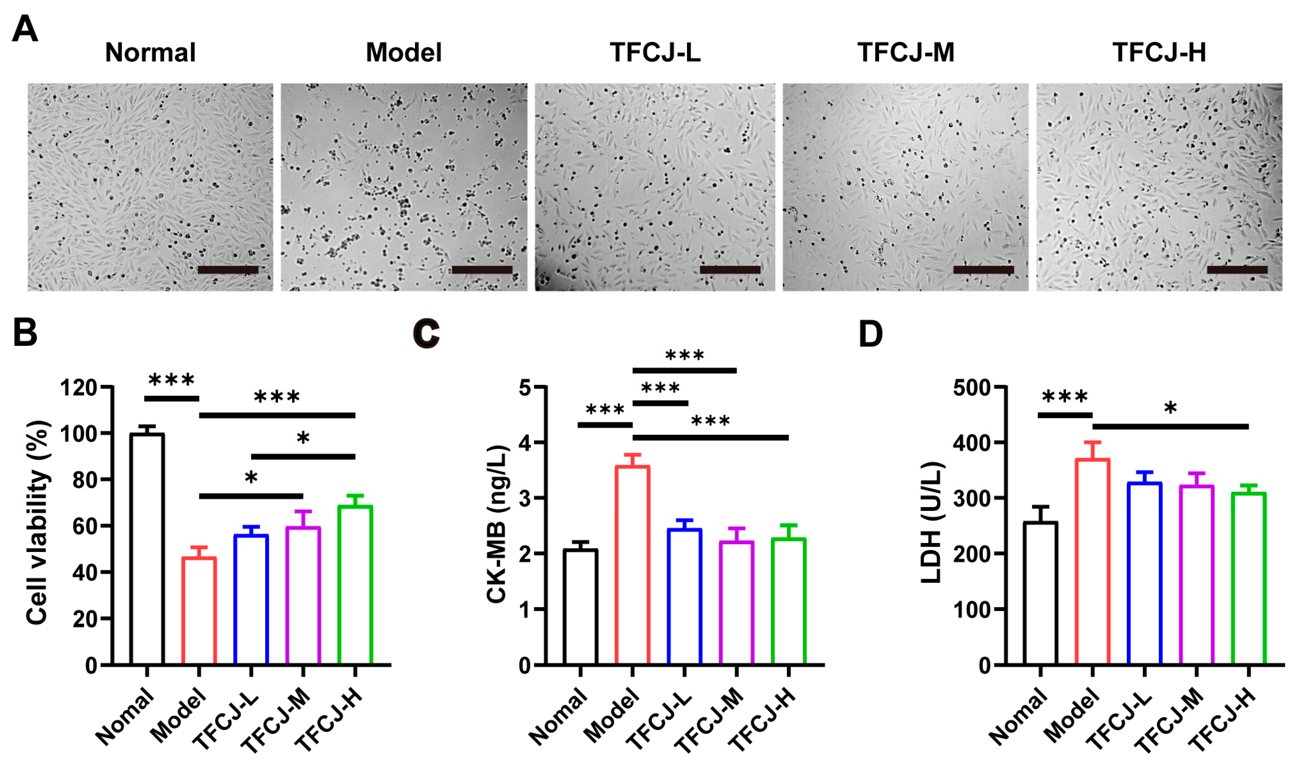2.2. Effect of TFCJ on H/R-Induced Damage in H9c2 Cells