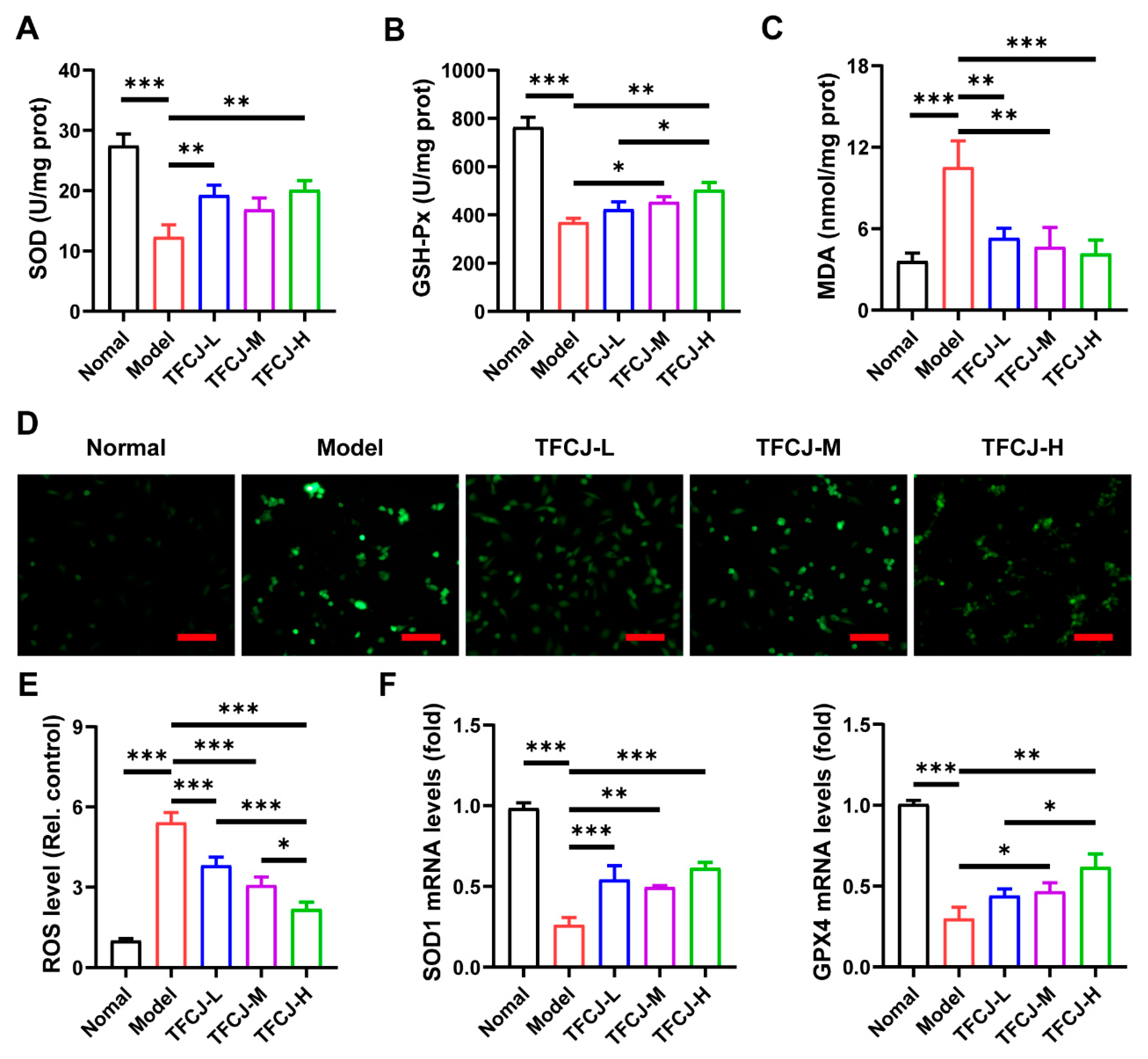 2.3. Effects of TFCJ on Oxidative Damage in H9c2 Cells