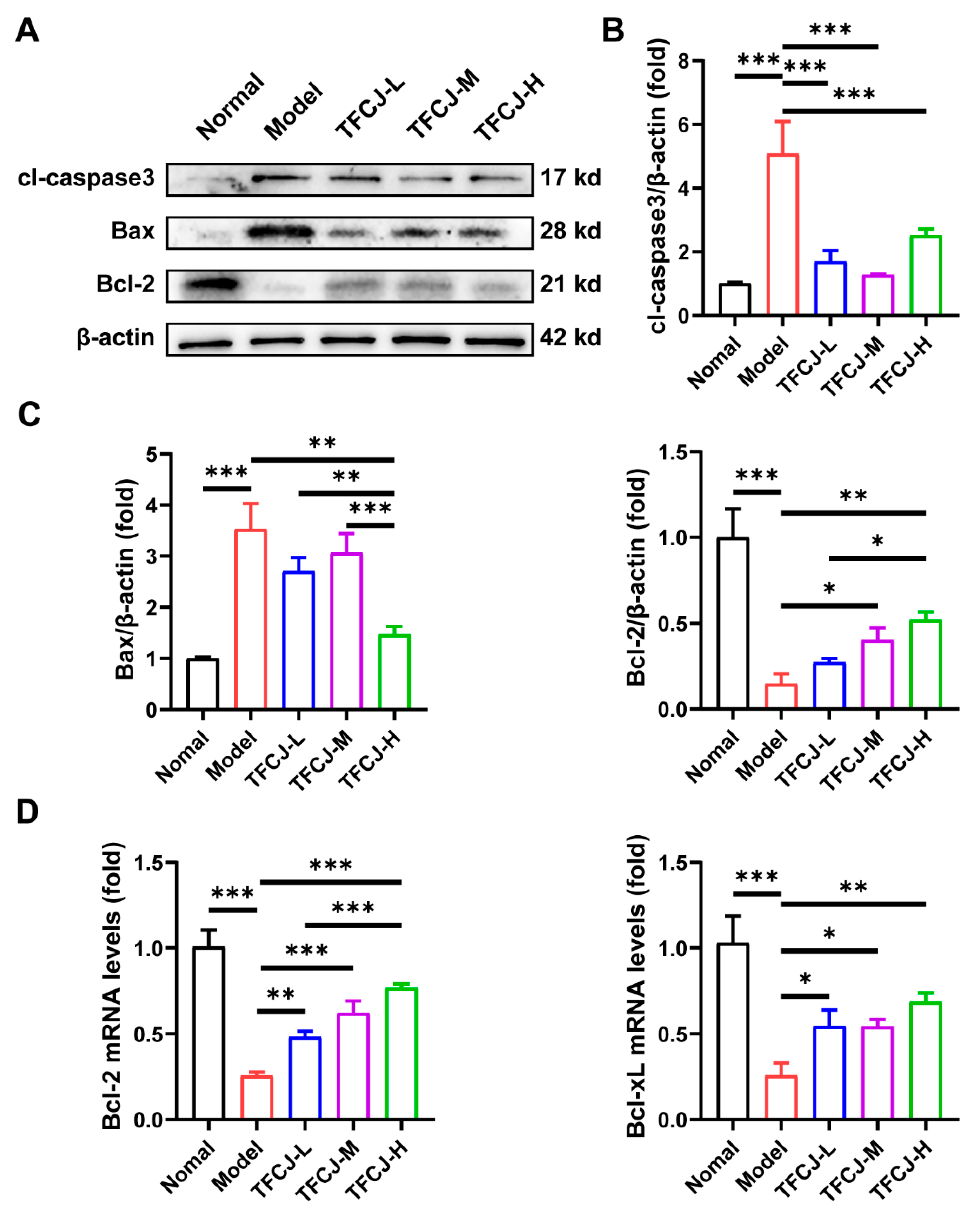 2.4. Effect of TFCJ on the Expression of Apoptotic Proteins in H9c2 Cells