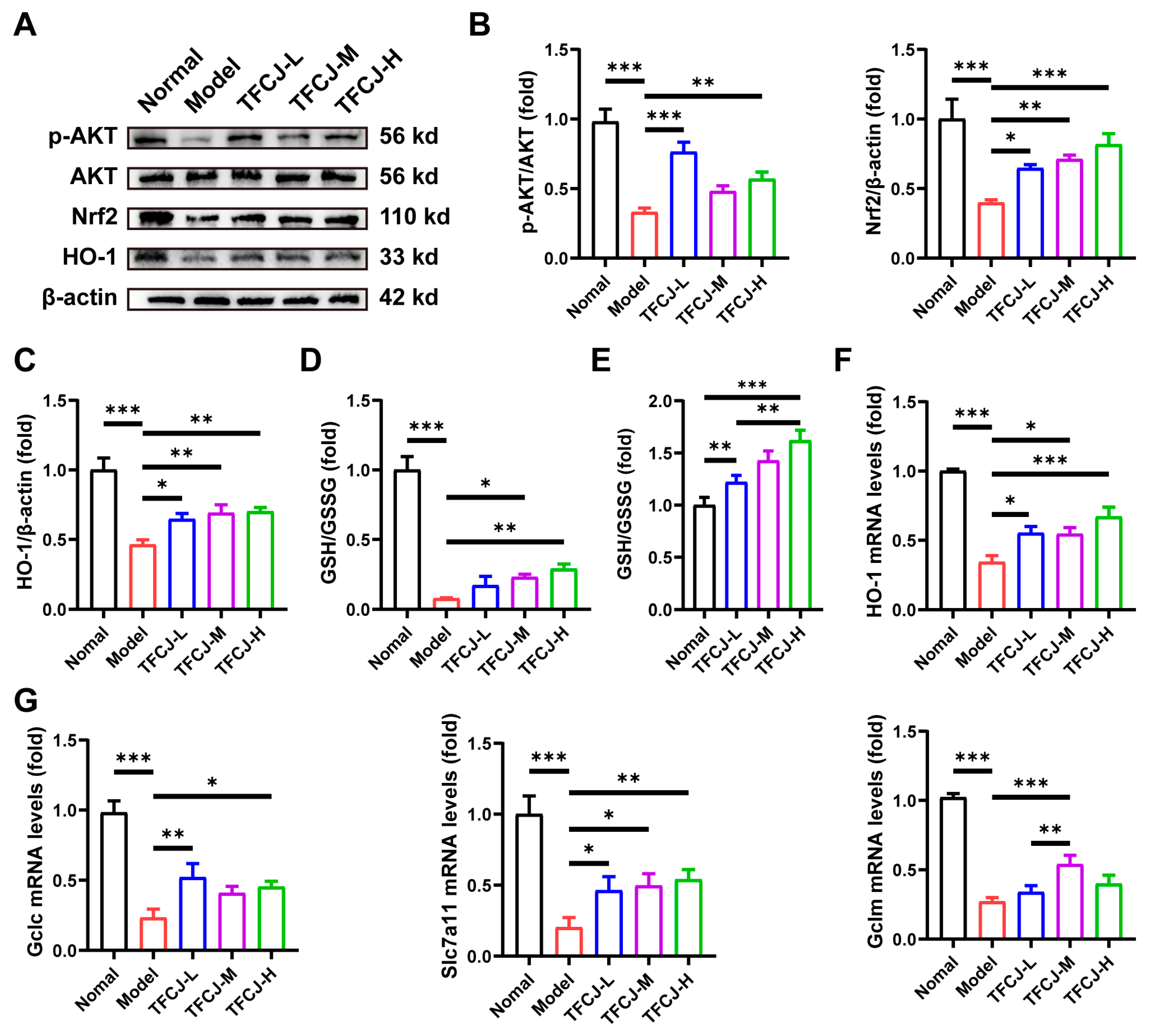 2.9. TFCJ Upregulates the Levels of Antioxidant Genes and GSH in H9c2 Cells by Activating AKT-Nrf2