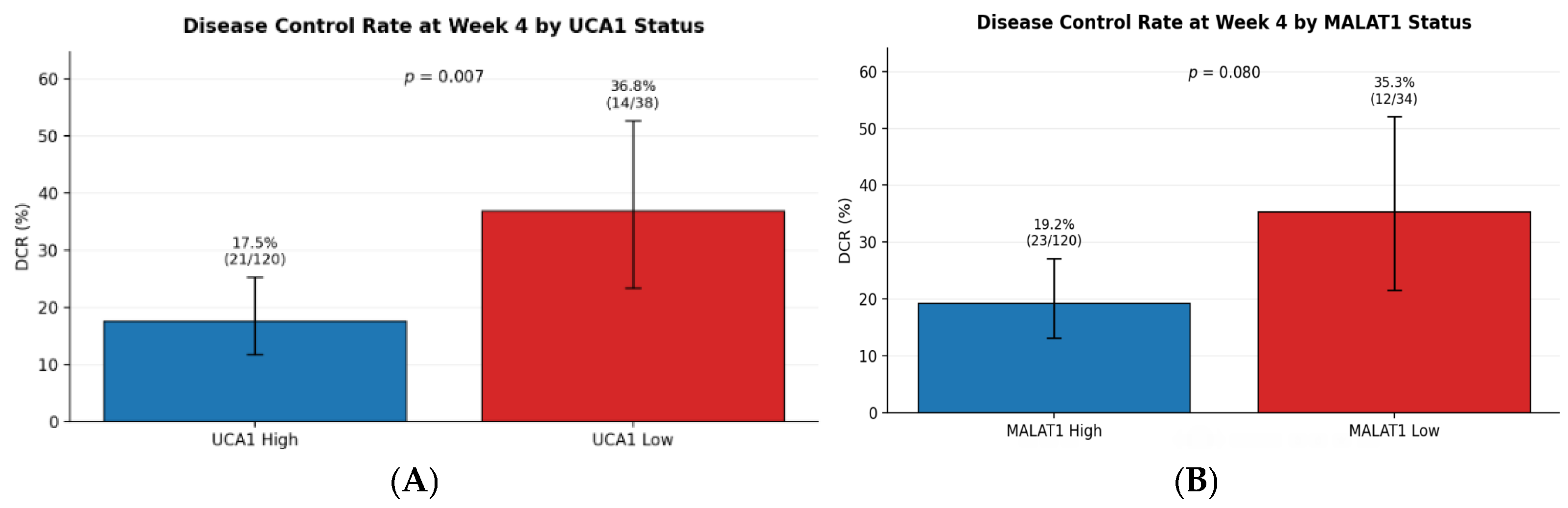 Biomarker criterion: UCA1 and/or MALAT1 levels at Week 4 remain stable (≤10% change) or increase (>10% elevation) compared to baseline, indicating absence of biomarker response paralleling radiological progression