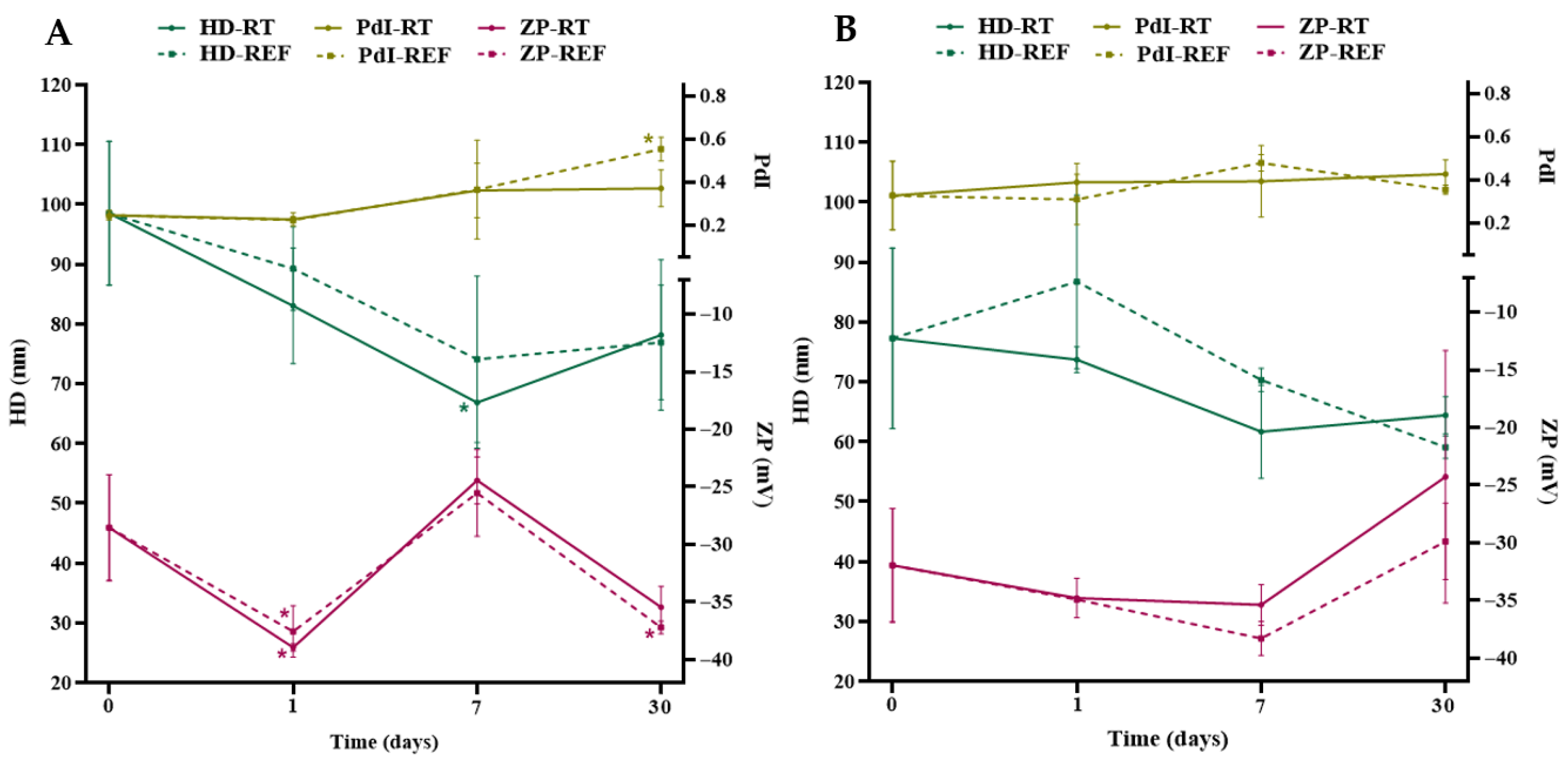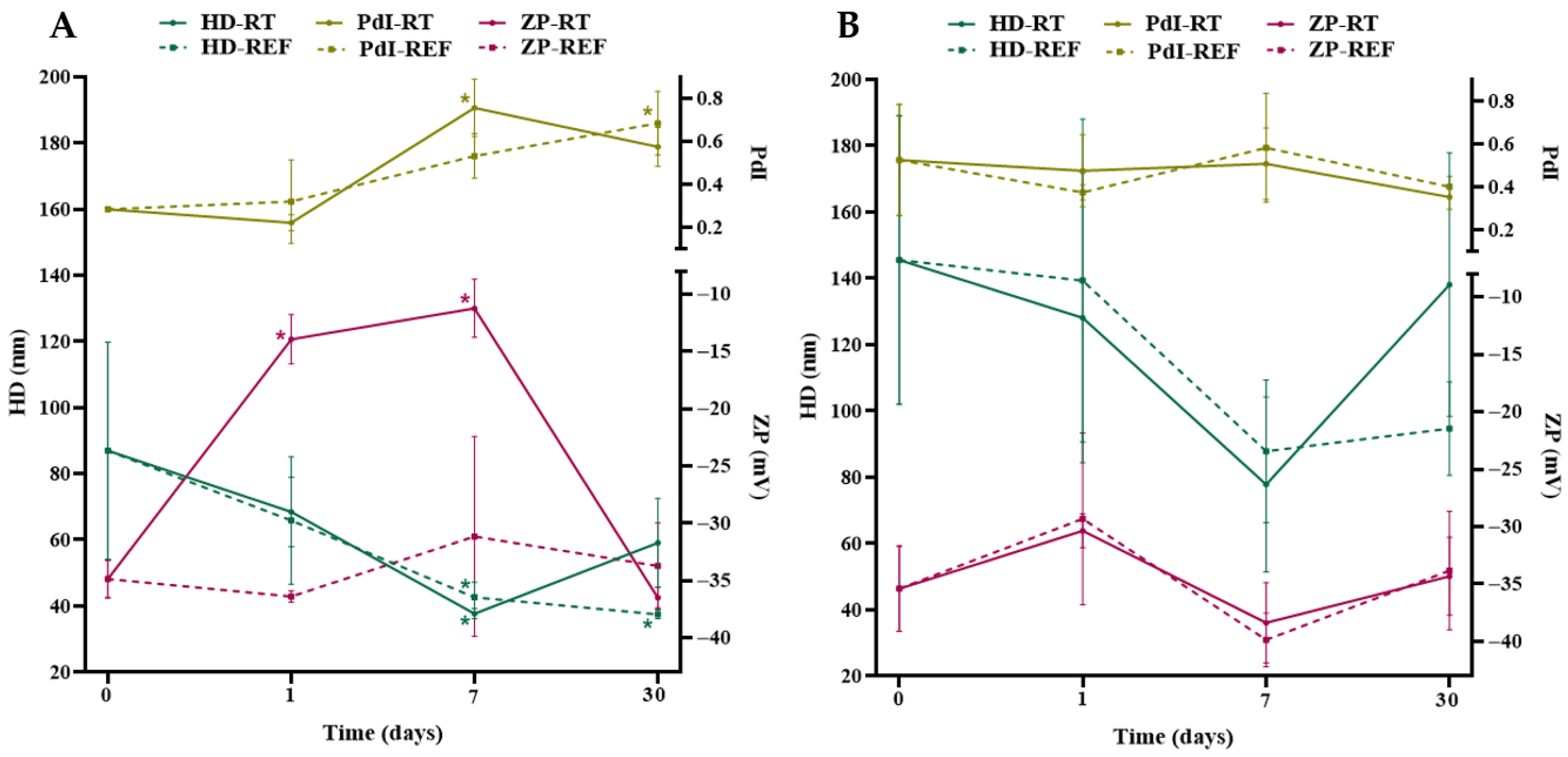 2.4. Stability Analyses by Dynamic Light Scattering (DLS) and Zeta Potential