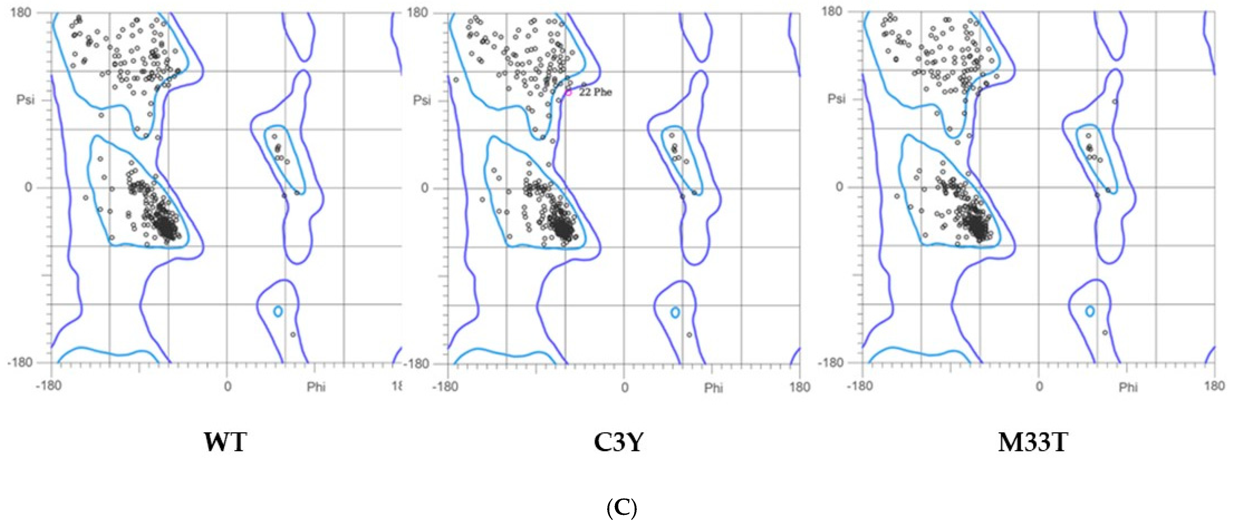 33]. The validation was based on the Ramachandran plot outliers and favored rotamer percentages.