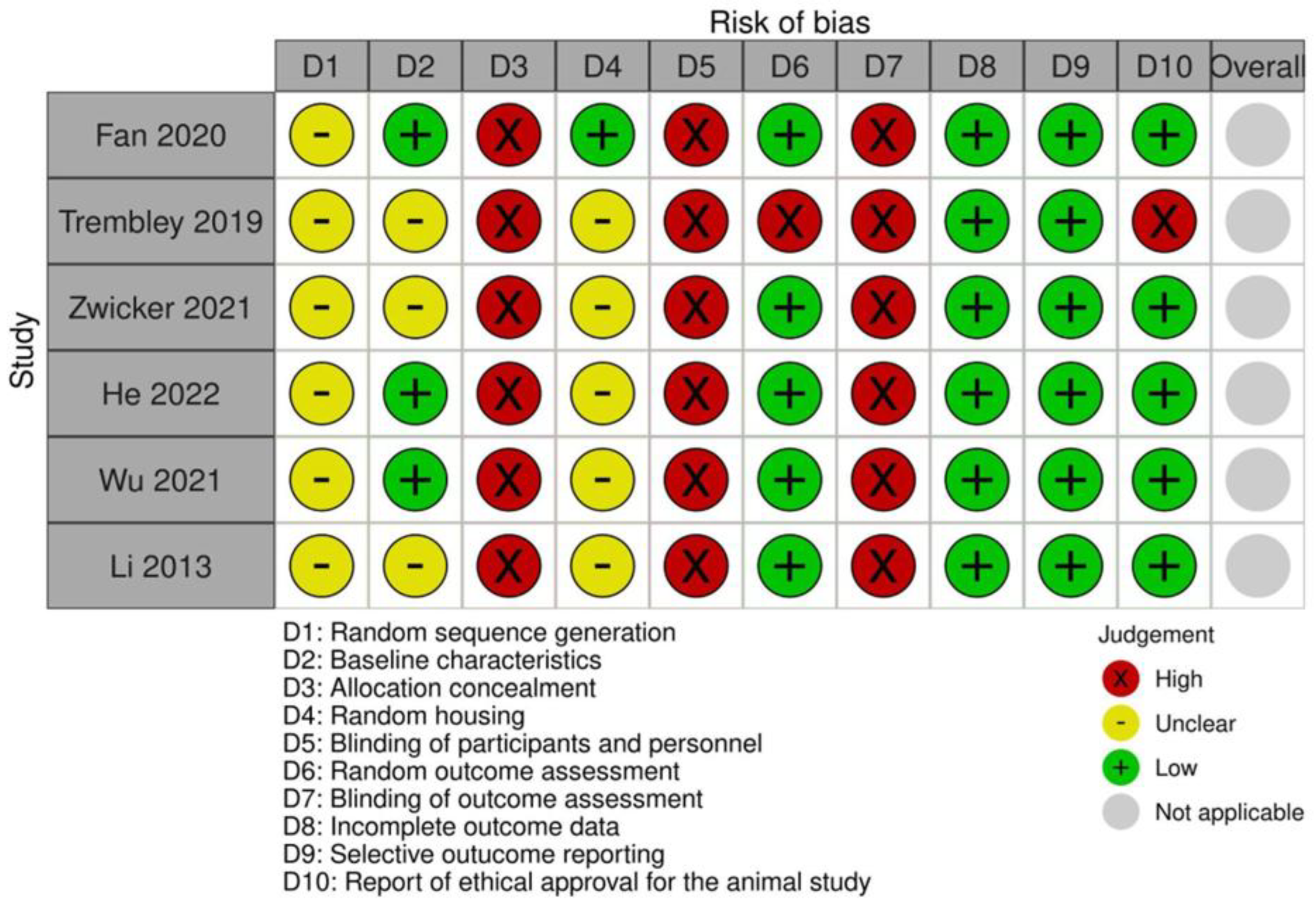 3.2.2. Risk of Bias Assessment (SYRCLE Tool)