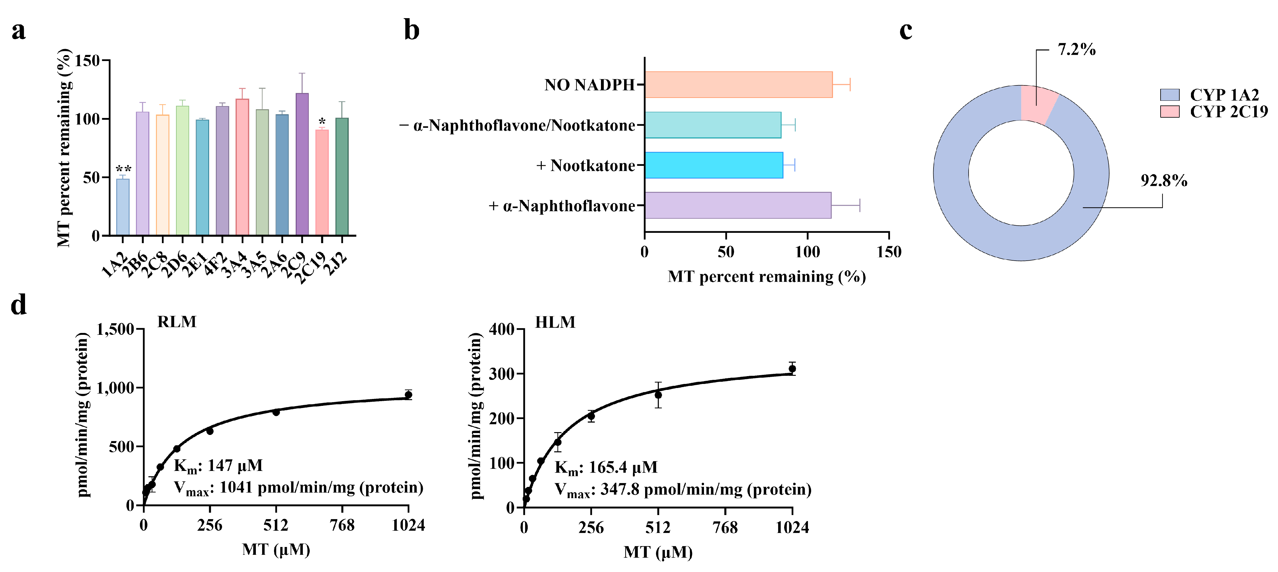 2, rCYP at a final concentration of 20 pmol/mL, 1 mM NADPH, and 1 μM MT (with DMSO content < 0.1% and organic solvent content < 1% in the system) [