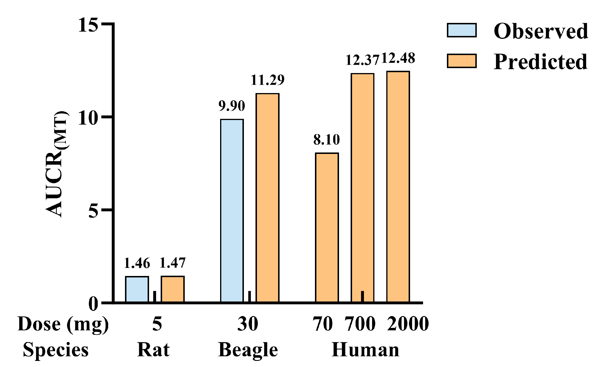To exclude interference from PEPT1 during the absorption phase and more accurately predict the role of CYP enzymes, the observed AUCR values for MT exposure during the elimination phase in animals were calculated using dog AUCR(0.75h-t) and the rat AUCR(1h-t). These values were used to validate the model, and finally, the intensity of DDI induced by CBD on MT in humans was predicted.