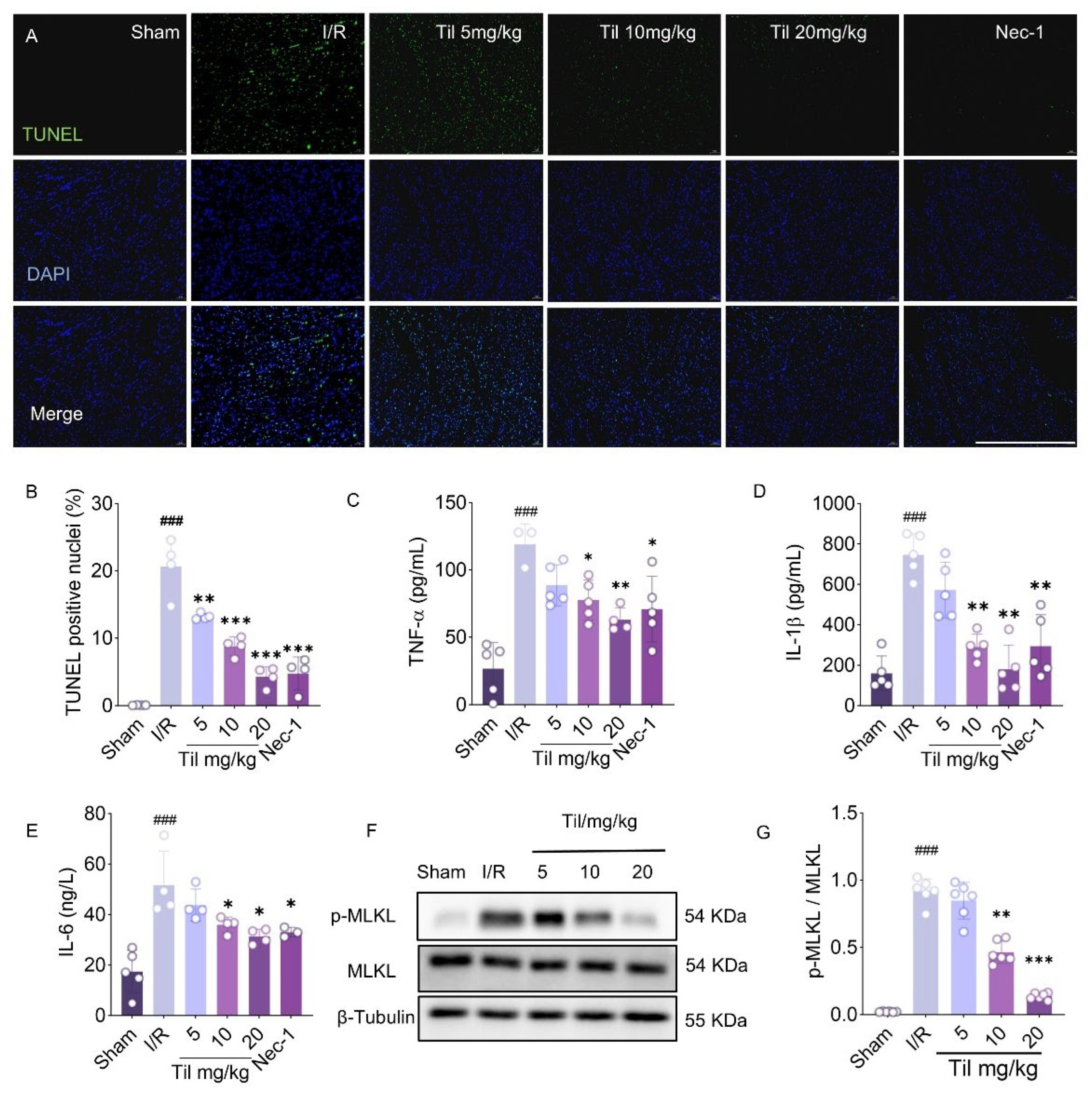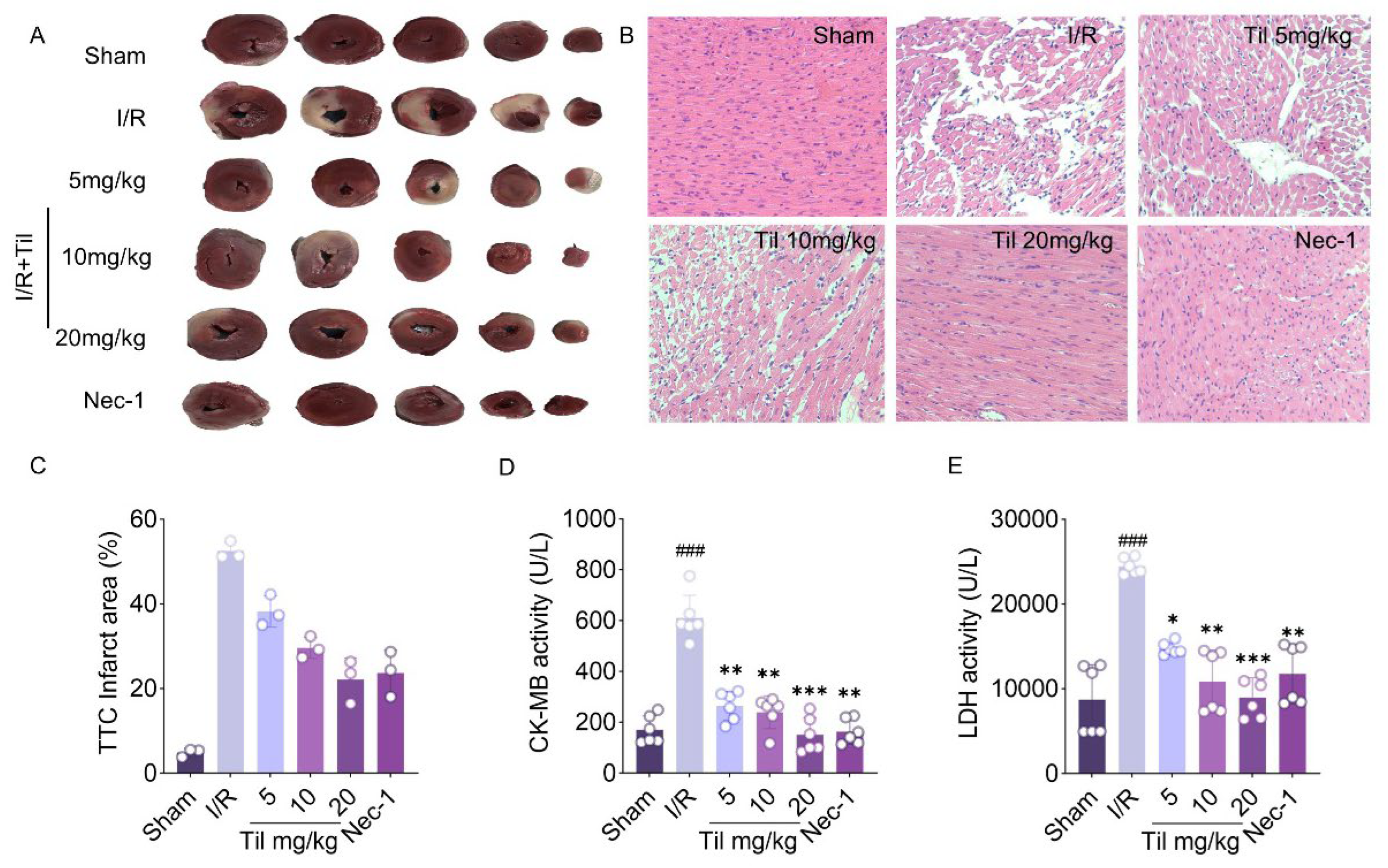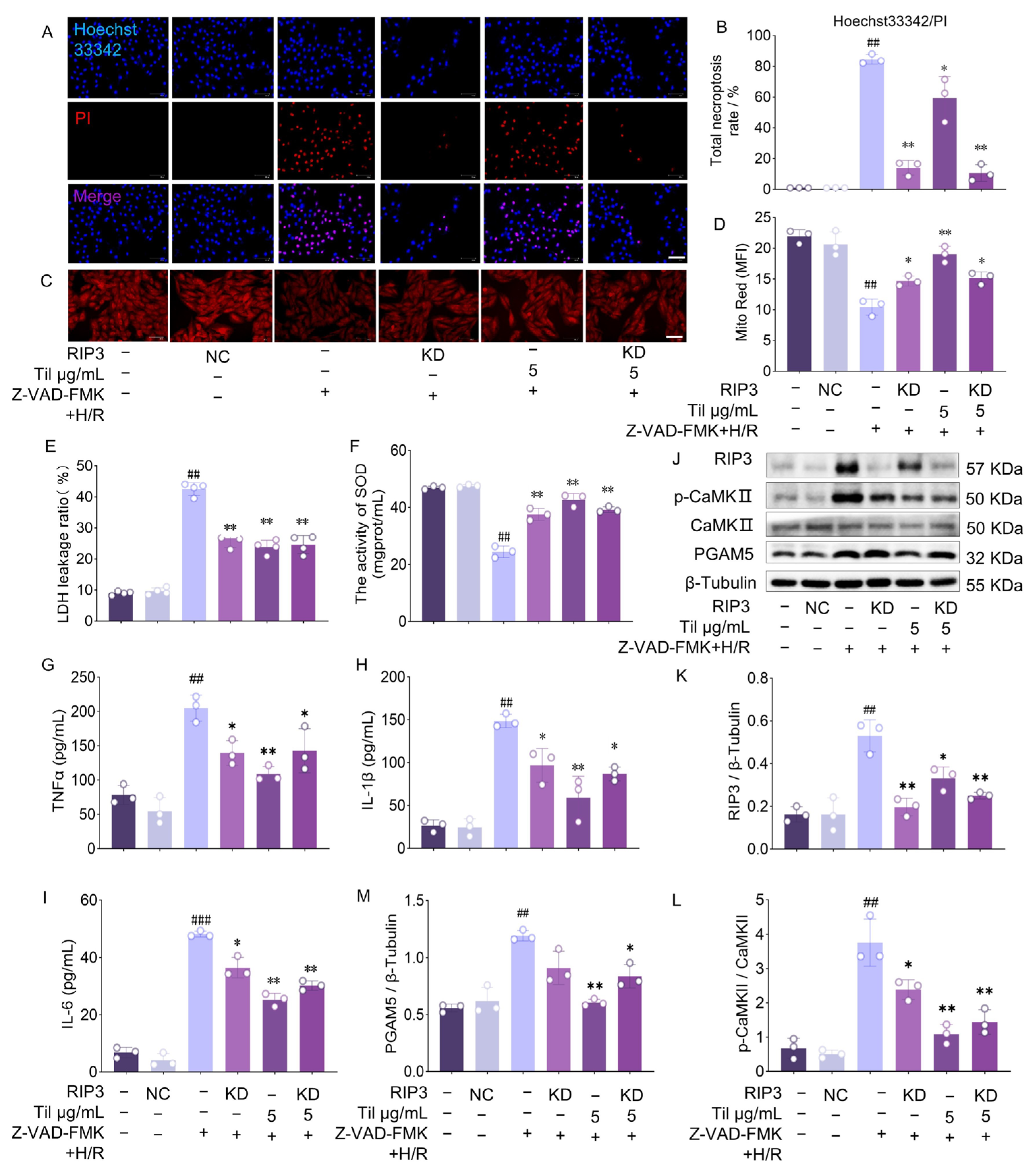 2.2. Til Alleviates Necroptosis and Inflammatory Response in I/R Cardiomyocyte