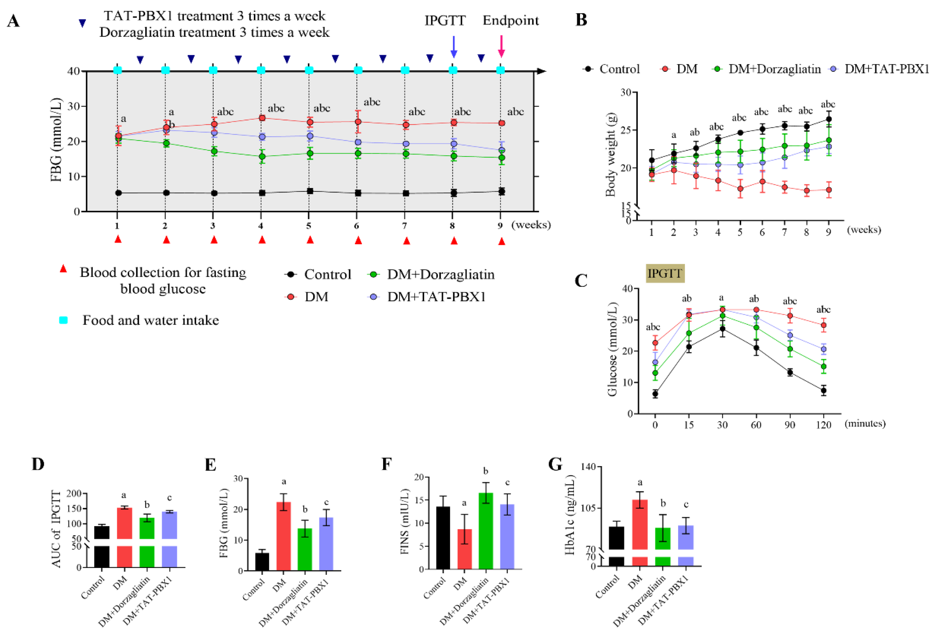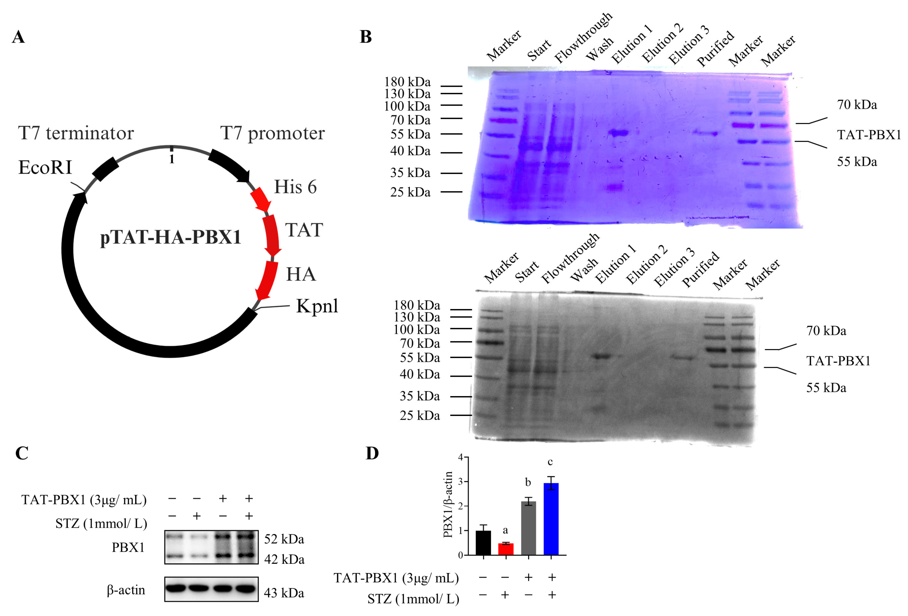 2.4. Therapeutic Evaluation of TAT-PBX1 in an STZ-Induced Diabetic Mouse Model