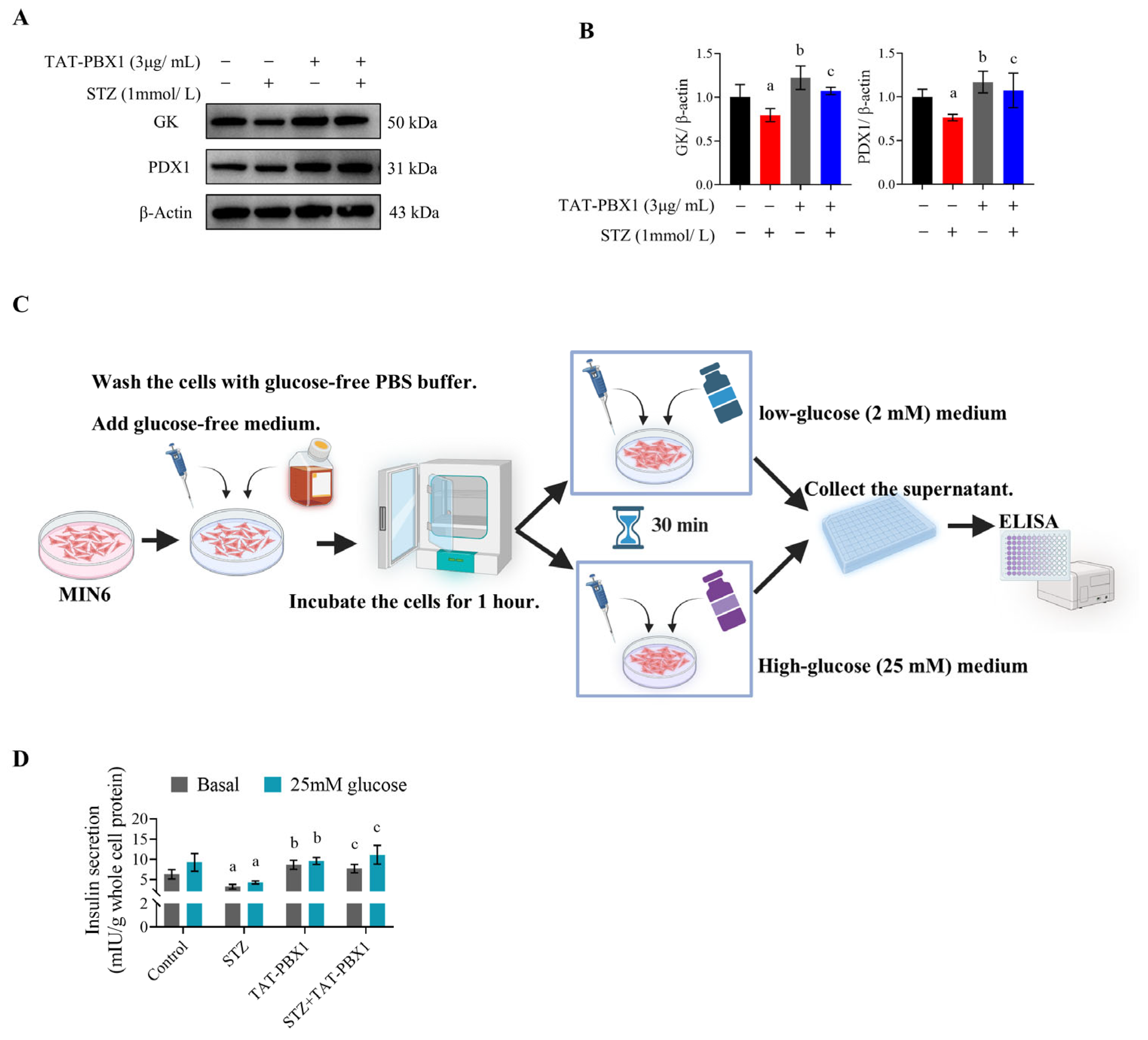 2.3. TAT-PBX1 Restores Insulin Signaling in STZ-Injured MIN6 Cells and Improves Insulin Secretory Function