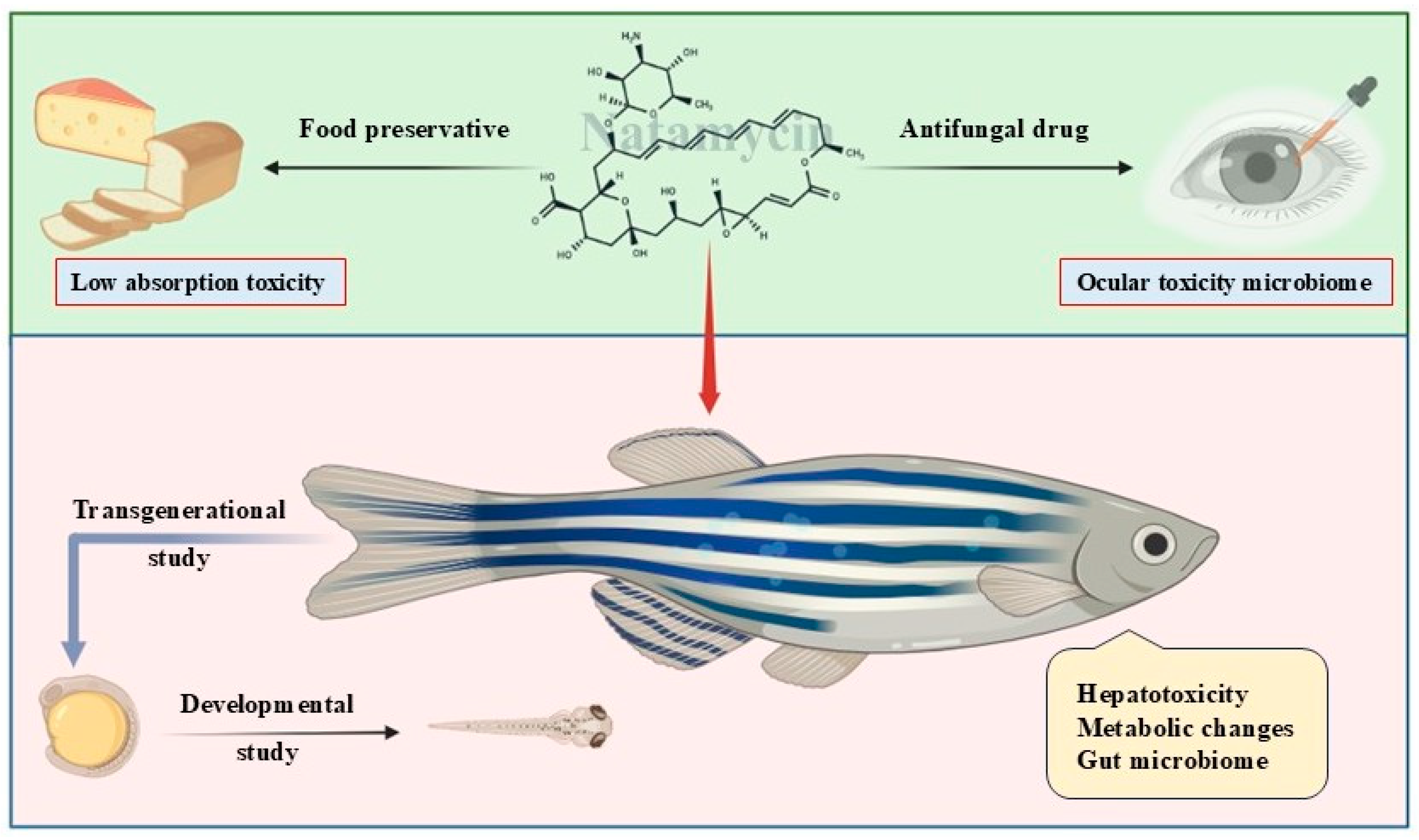 Bangeppagari, M.; Jagadish, P.; Srinivasa, A.; Choi, W.; Tiwari, P. Natamycin in Food and Ophthalmology: Knowledge Gaps and Emerging Insights from Zebrafish Models. Pharmaceuticals 2026, 19, 86. https://doi.org/10.3390/ph19010086