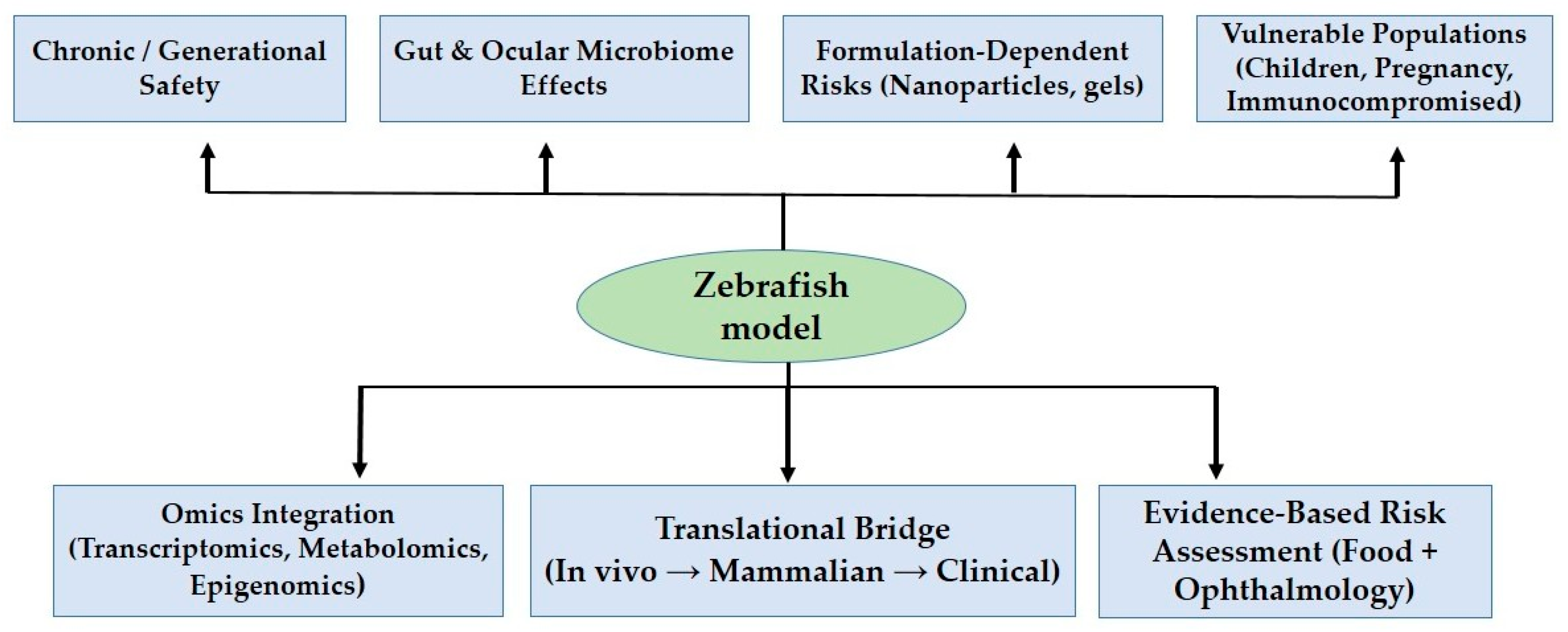 - Morshead, M.; Tanguay, R. Advancements in the Developmental Zebrafish Model for Predictive Human Toxicology. Curr. Opin. Toxicol. 2024, 41, 100516. [Google Scholar] [CrossRef]