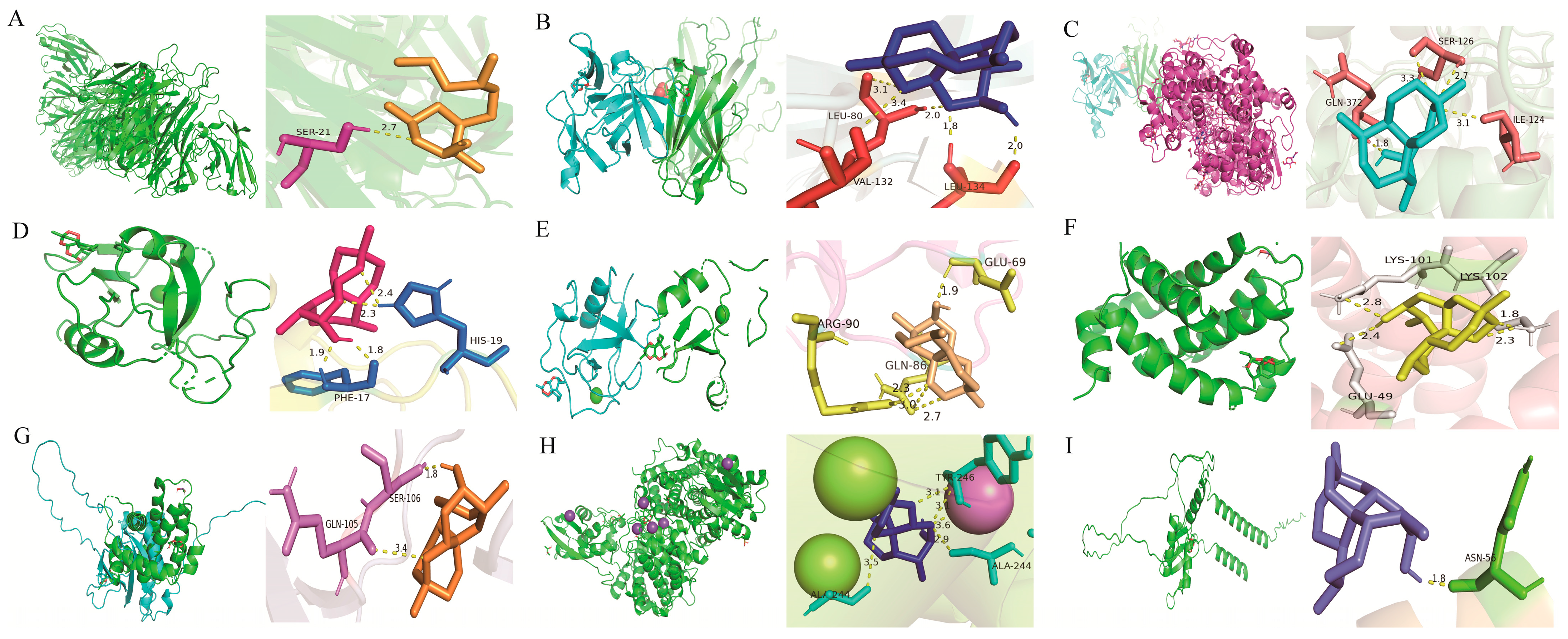 2.3. Molecular Docking Analysis of Hub Genes with DHA