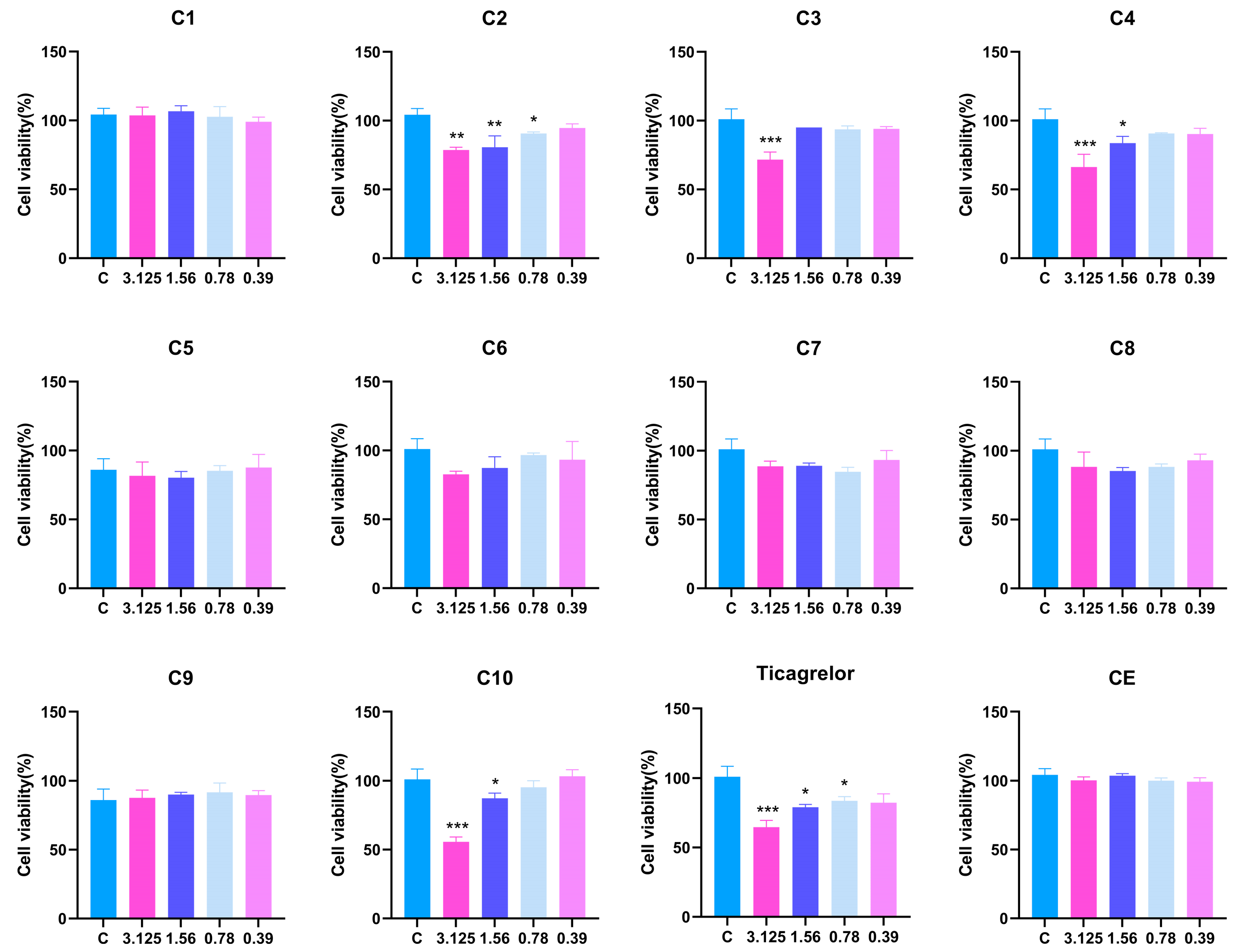 2.6. Identification of P2Y12 as Another Potential Target of Derivative C5