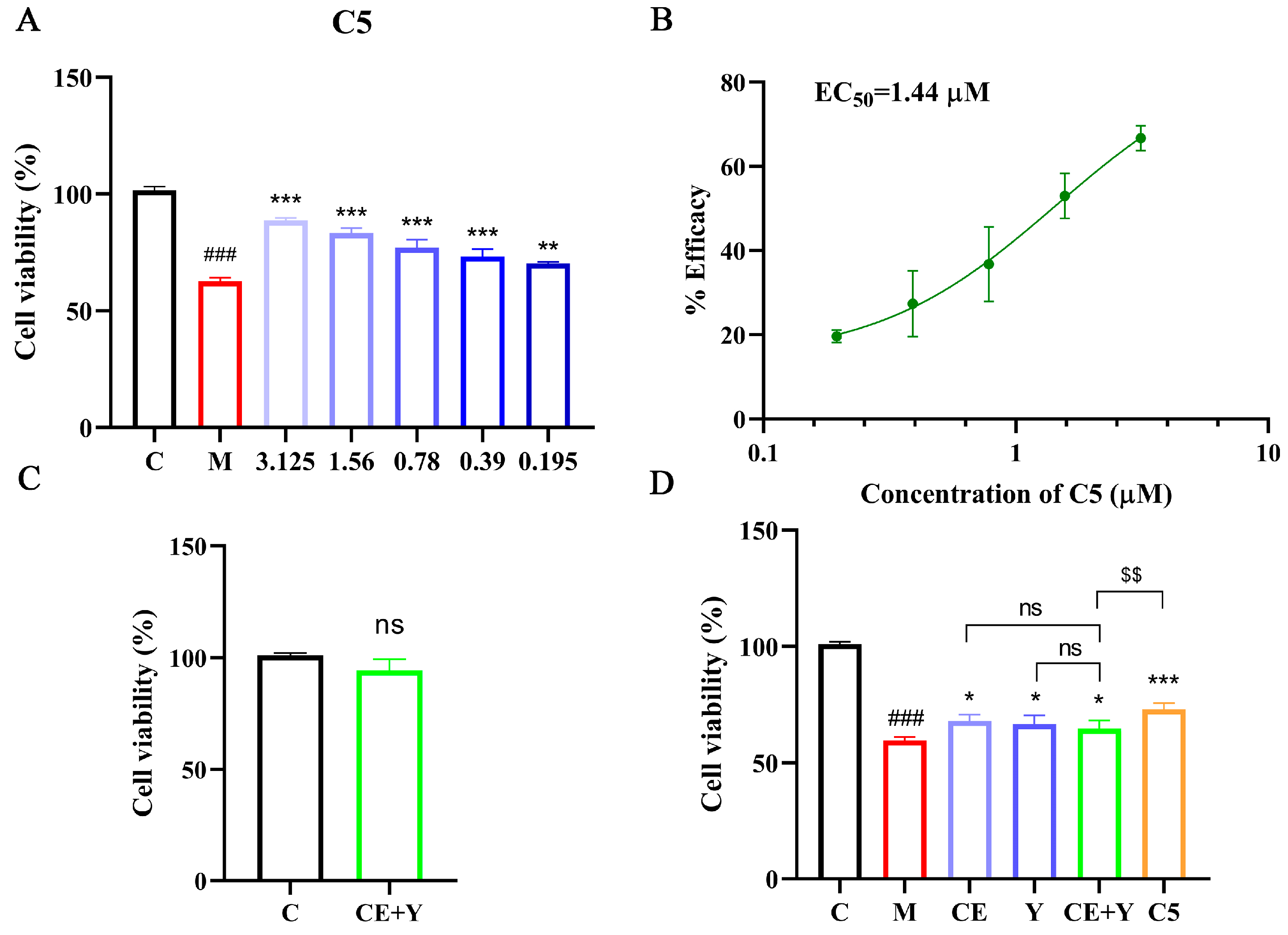 2.2.3. Protective Effects of Compound C5 Against Ox-LDL-Induced Damage in HUVECs