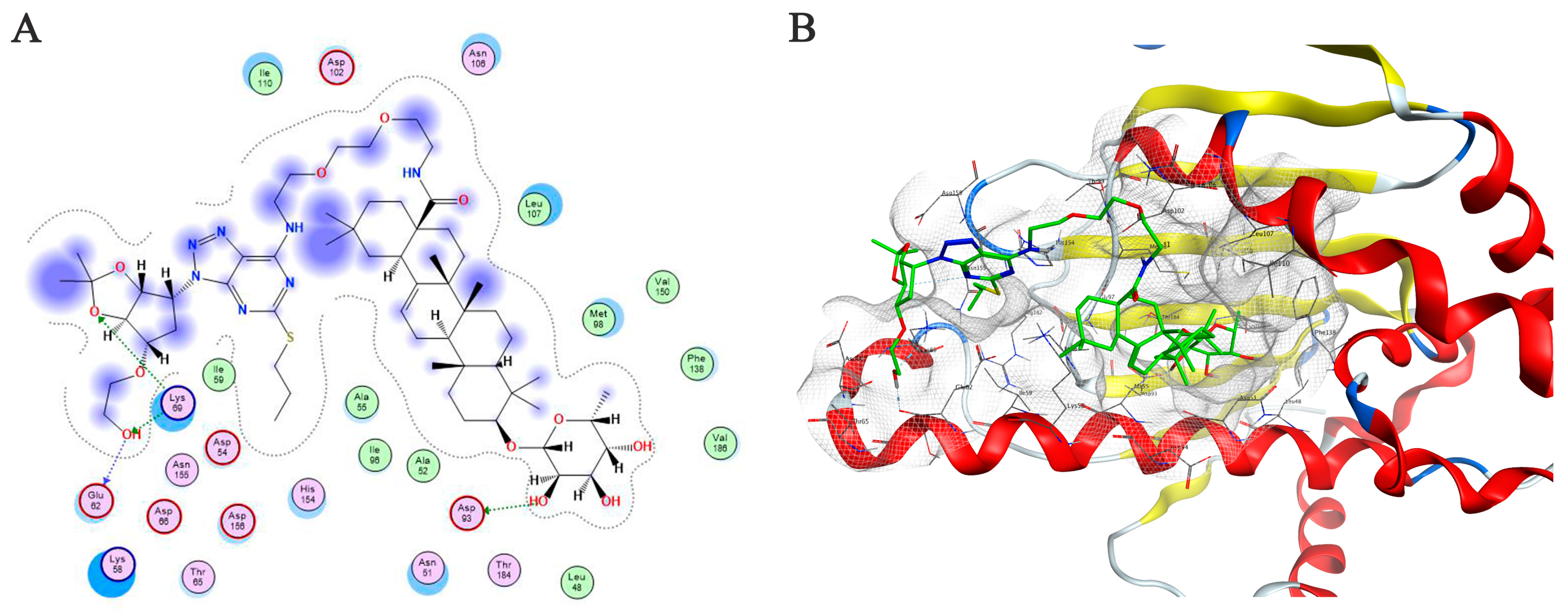 3.2.4. Molecular Docking (MD)