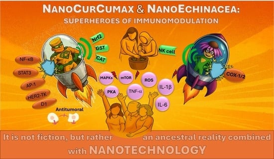 - Catanzaro, M.; Corsini, E.; Rosini, M.; Racchi, M.; Lanni, C. Immunomodulators Inspired by Nature: A Review on Curcumin and Echinacea. Molecules 2018, 23, 2778. [Google Scholar] [CrossRef]