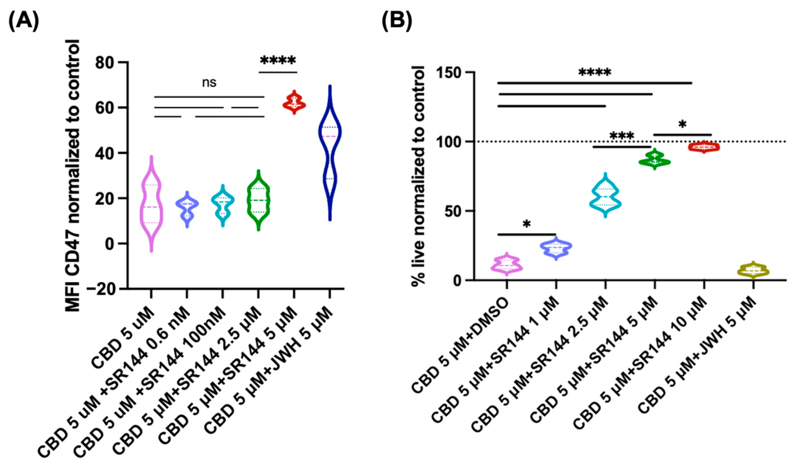 2.4. Mechanisms Underlying CBD-Induced Reduction in CD47 Expression
