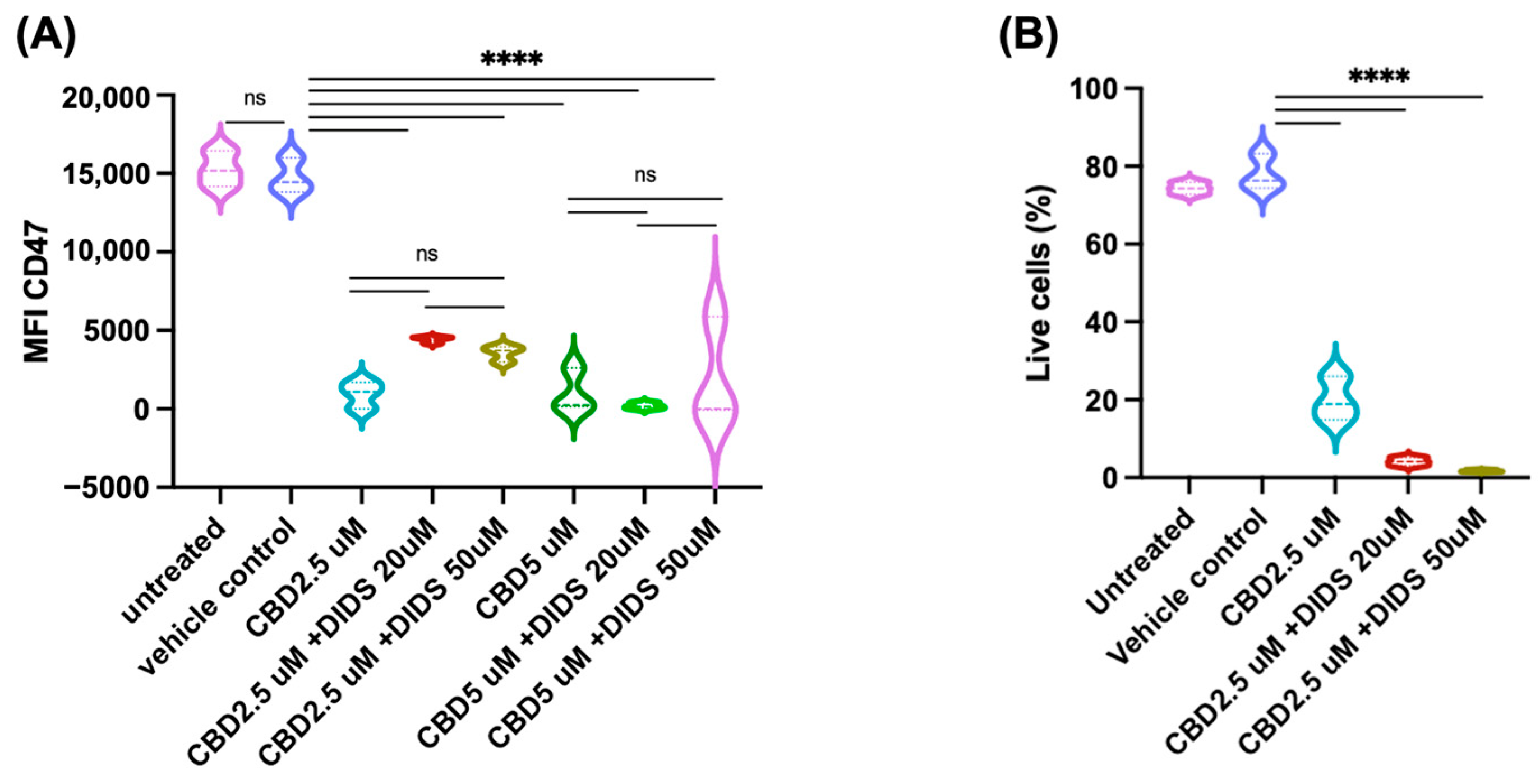 APA StyleWang, L., Samarani, S., Fadzeyeva, E., Vigano, M., As’sadiq, A., Vulesevic, B., Ahmad, A., & Costiniuk, C. T. (2026). Cannabidiol Regulates CD47 Expression and Apoptosis in Jurkat Leukemic Cells Dependent upon VDAC-1 Oligomerization. Pharmaceuticals, 19(1), 95. https://doi.org/10.3390/ph19010095