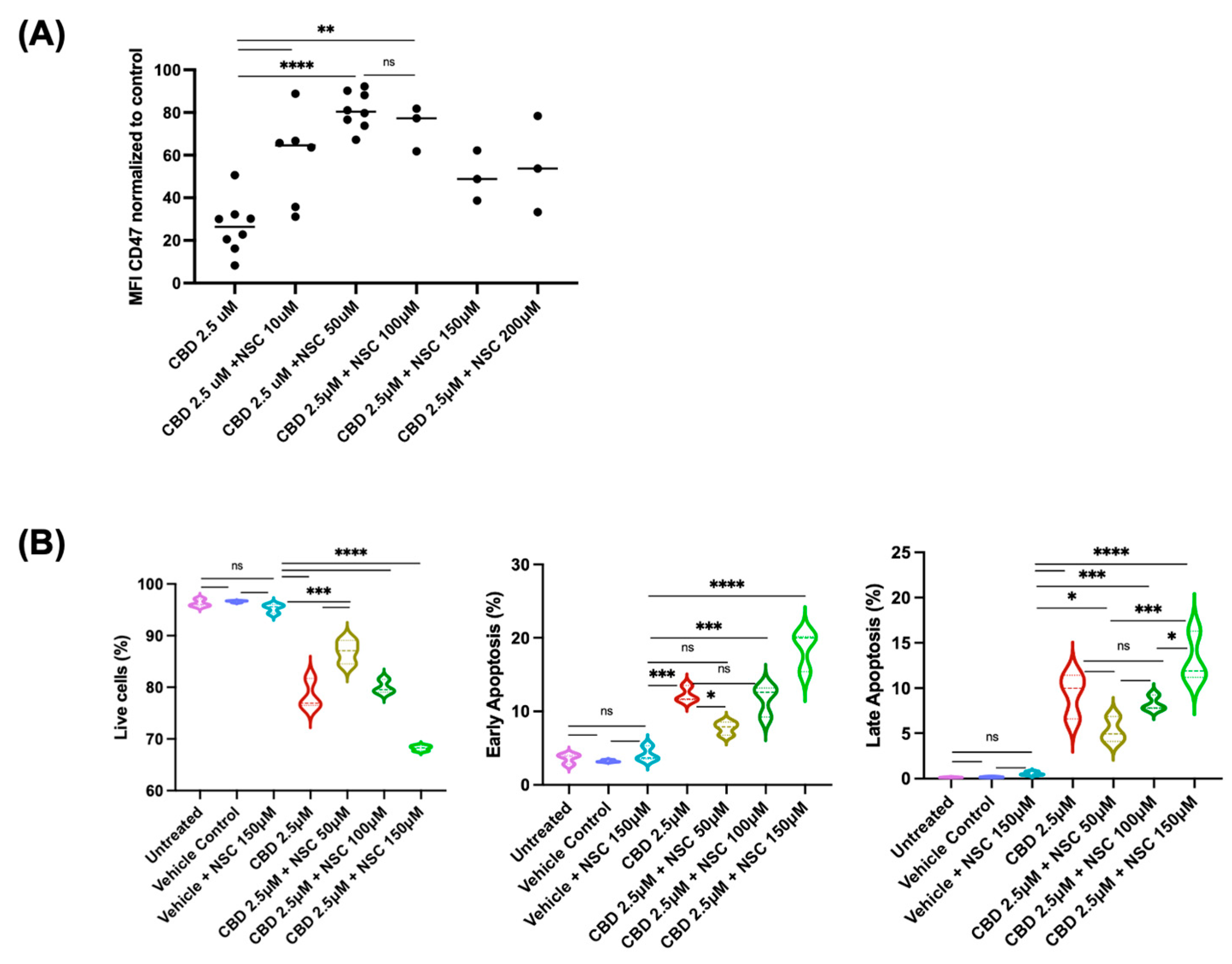 2.1. CBD Reduces CD47 Expression in Jurkat Cells