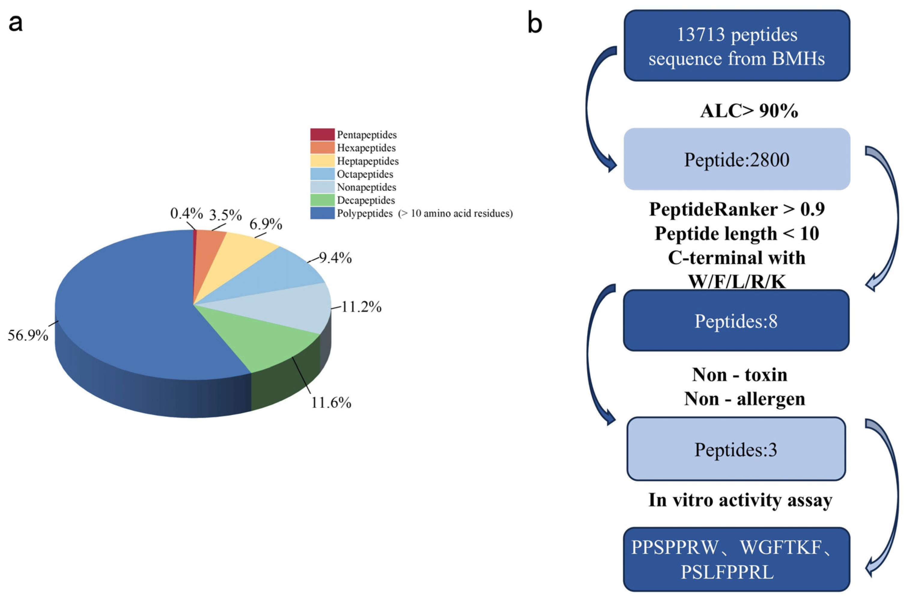 10]. Overall, these findings not only confirm the presence of ACEIPs in BMHs-IU but also demonstrate the efficacy of an integrated peptidomics–bioinformatics approach for ACEIPs discovery.