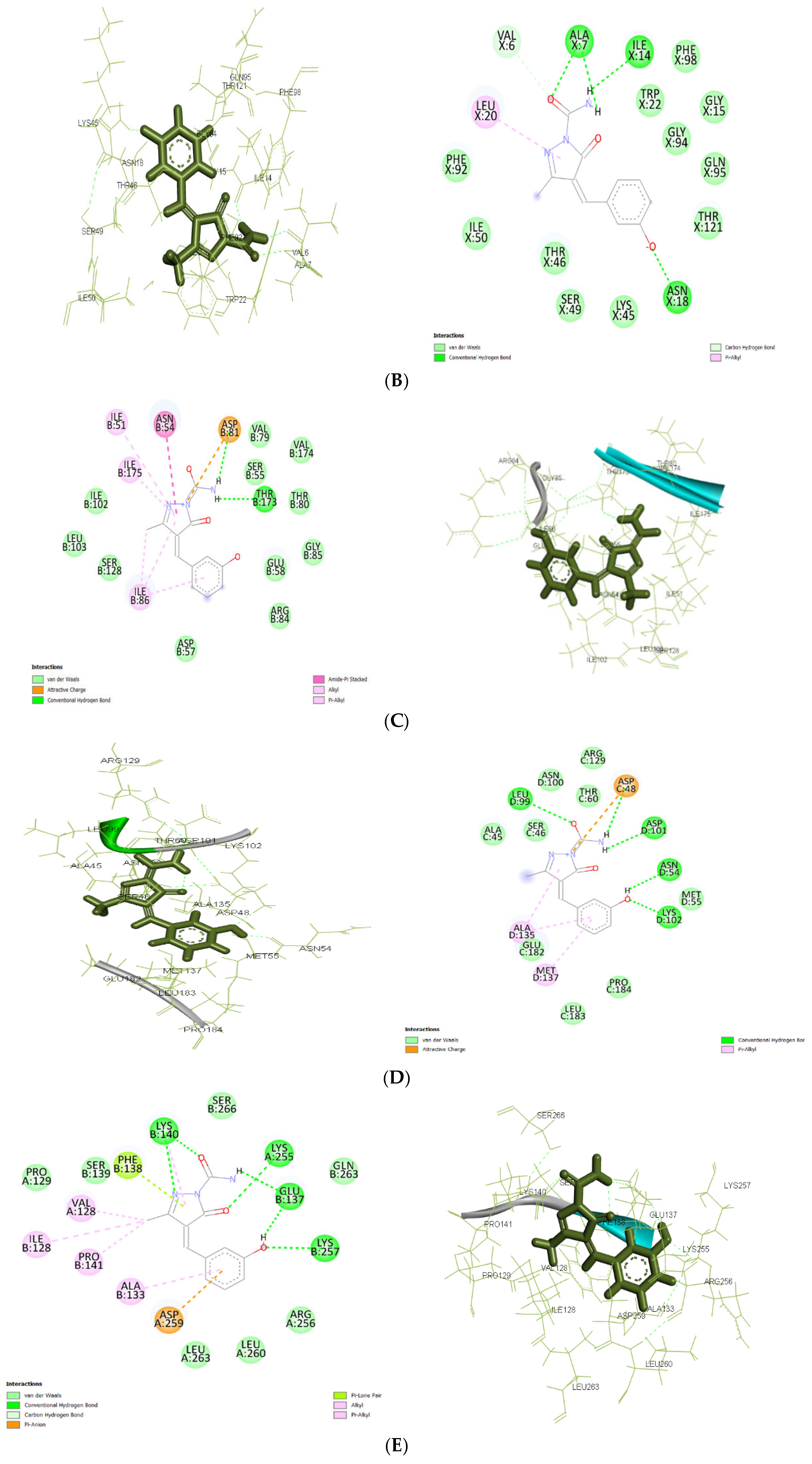 4.2.5. Ligand–Protein Docking Analysis