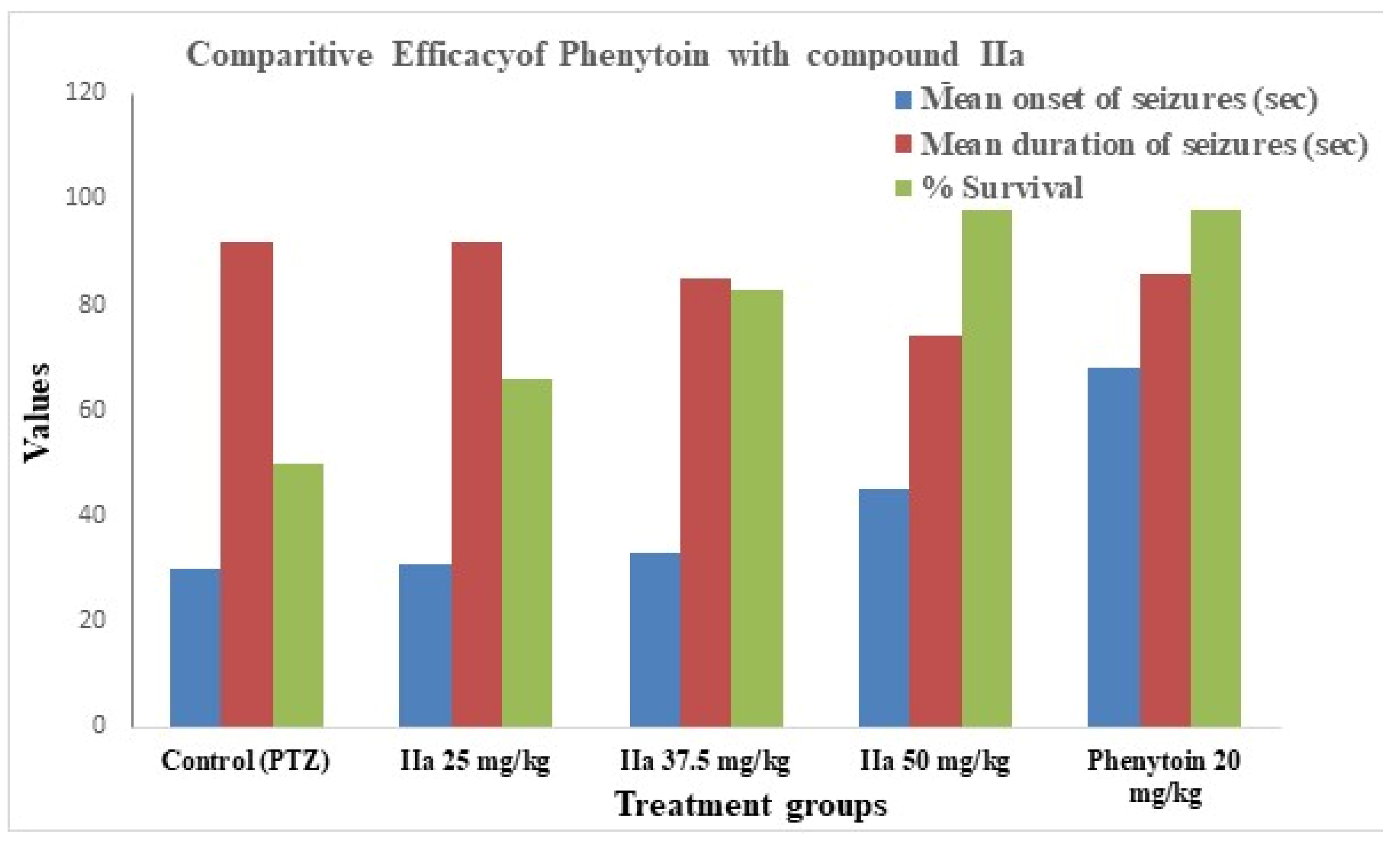 | Groups | Dose | Mean Onset of Seizures (s) | Mean Duration of Seizures (s) | Seizure Score (Racine) | % Survival |