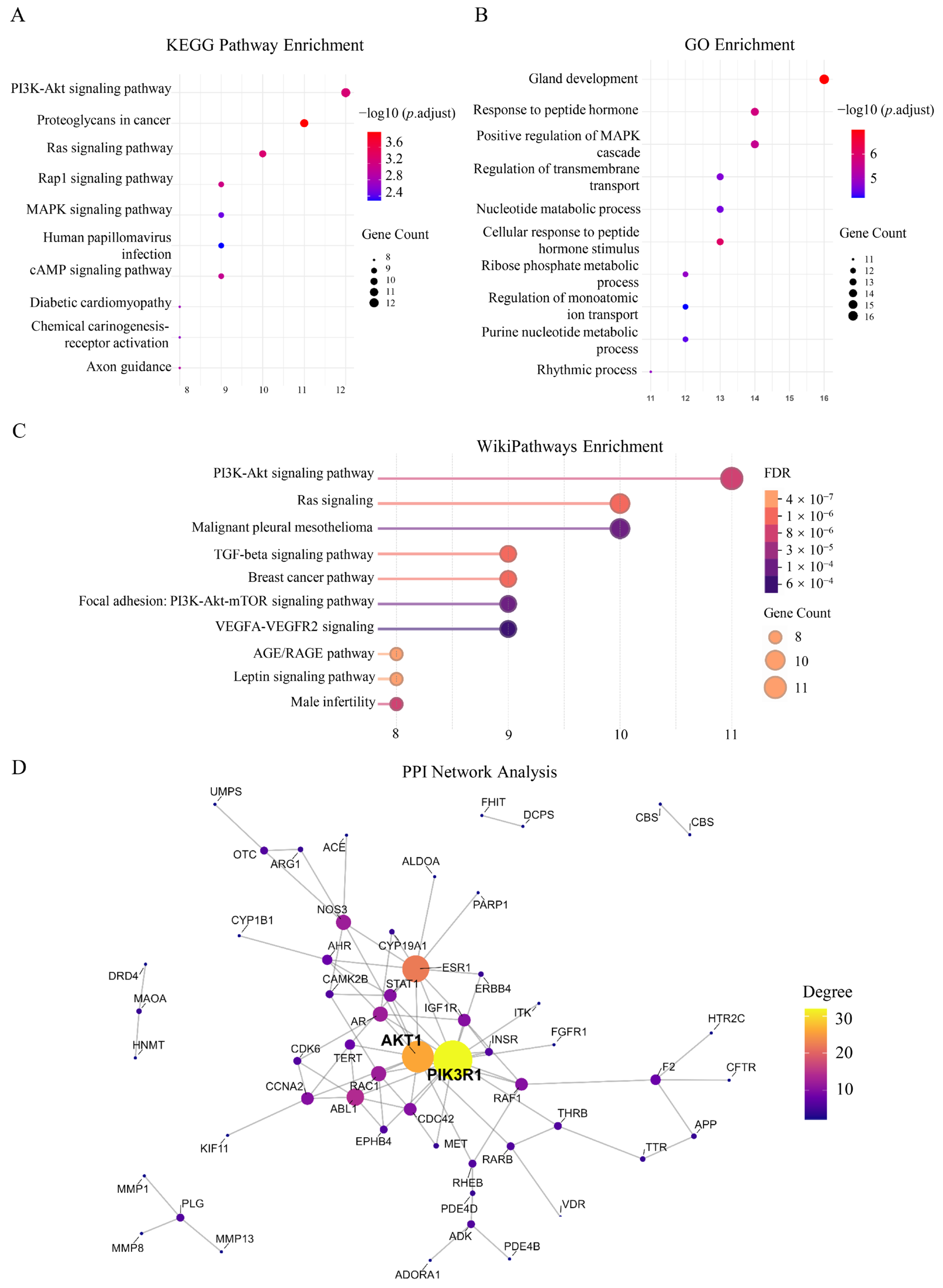 2.2. Network Pharmacology Analysis Indicated That the PI3K/AKT Signaling Pathway Is Implicated in the Antidepressant Effects of Apigenin