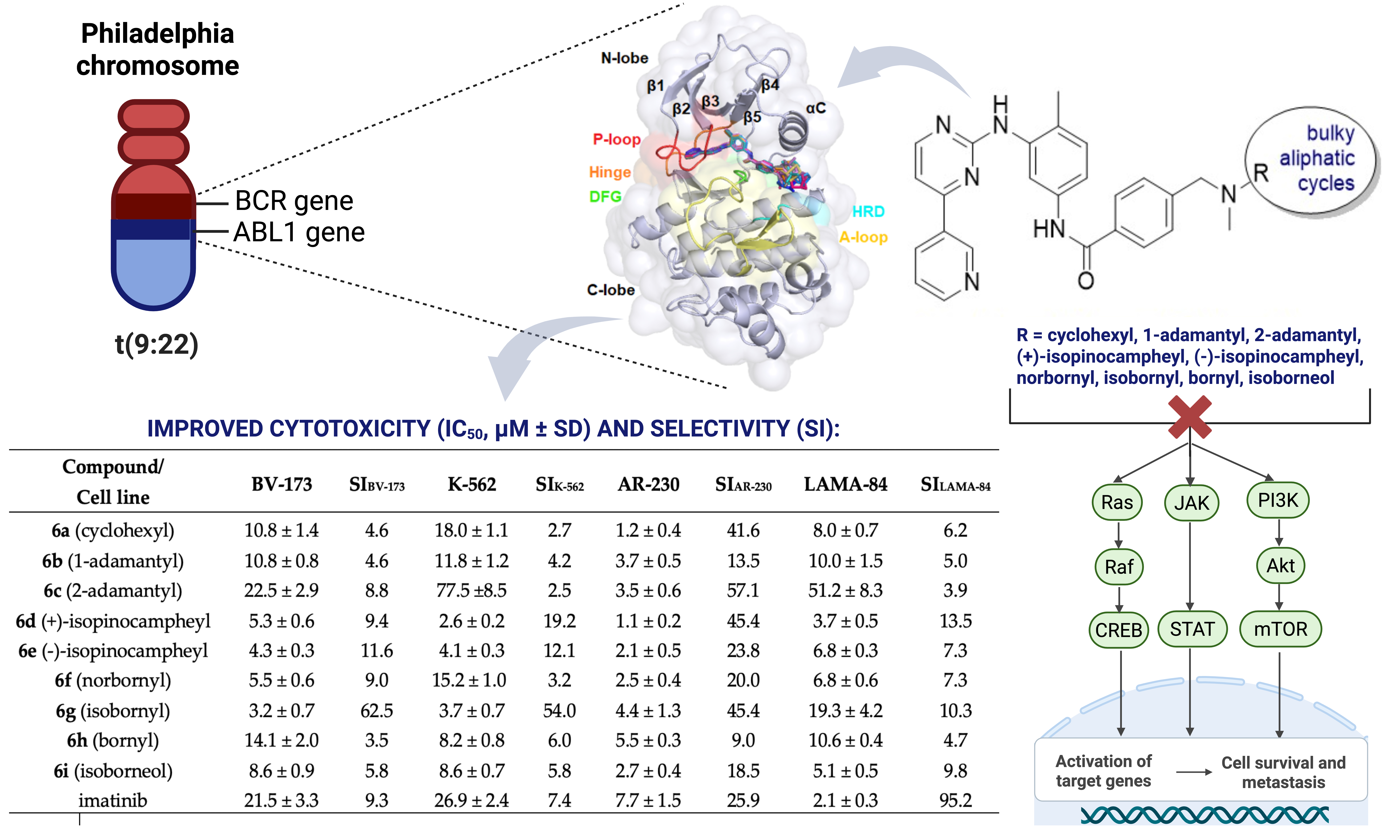 Mihaylova, R.; Dailova-Barzeva, A.; Philipova, I.; Momekov, G.; Doytchinova, I.; Atanasova, M.; Stavrakov, G. Rational Design, Synthesis, and Molecular Docking of Novel Terpene Analogues of Imatinib, and Their Inhibition on Downstream BCR-ABL Signaling. Pharmaceuticals 2026, 19, 198. https://doi.org/10.3390/ph19020198