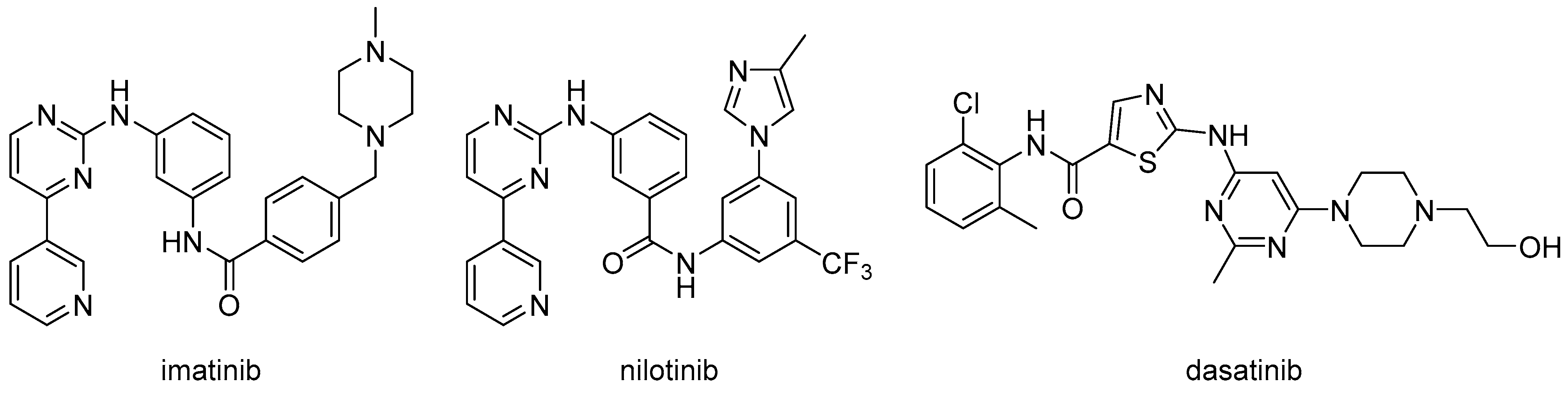 - Cowan-Jacob, S.W.; Fendrich, G.; Floersheimer, A.; Furet, P.; Liebetanz, J.; Rummel, G.; Rheinberger, P.; Centeleghe, M.; Fabbro, D.; Manley, P.W. Structural biology contributions to the discovery of drugs to treat chronic myelogenous leukaemia. Acta Crystallogr. D Biol. Crystallogr. 2007, 63, 80–93. [Google Scholar] [CrossRef] [PubMed]